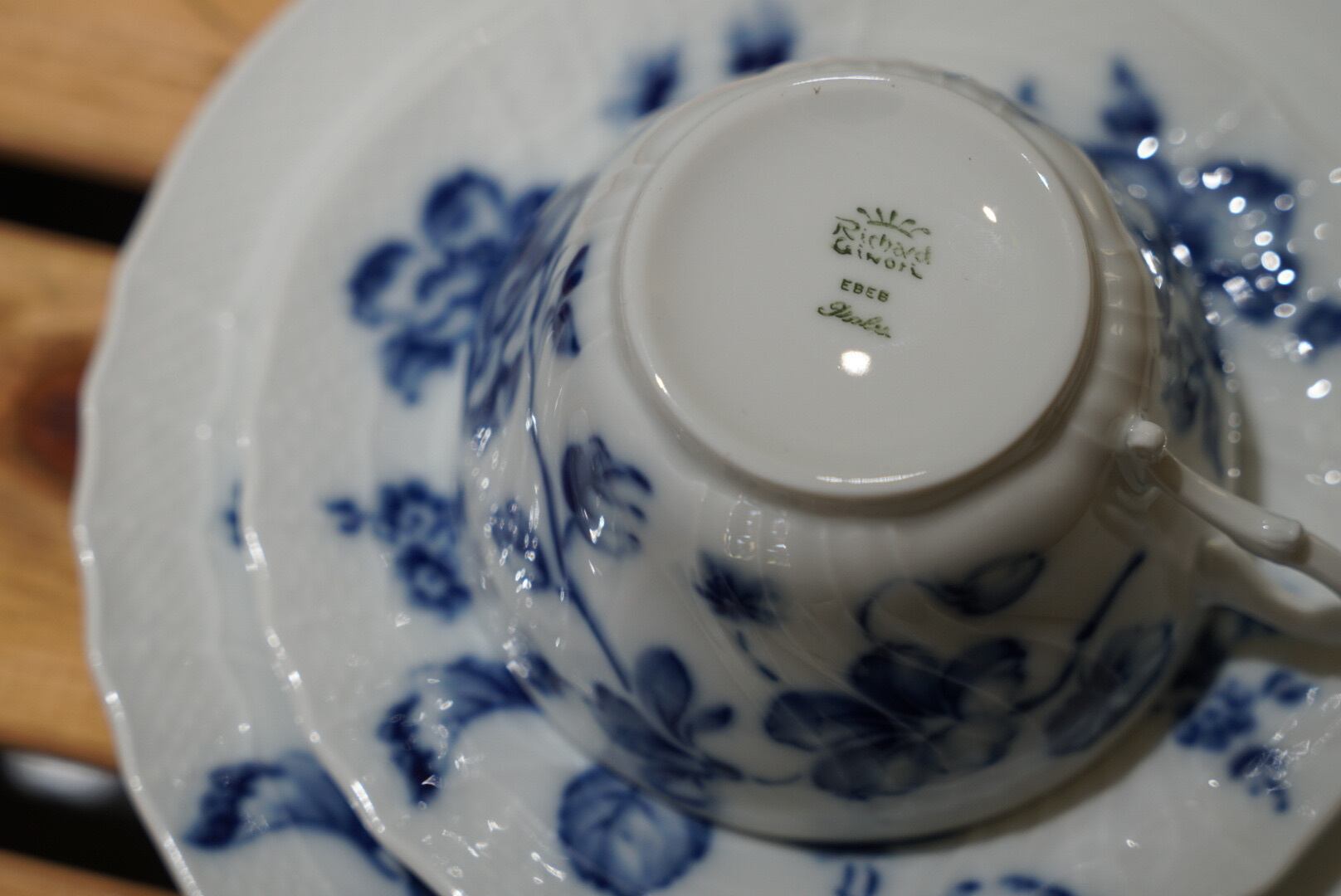 Richard Ginori(リチャード・ジノリ) 〈ローズブルー〉 カップ&ソーサーとケーキ皿のセット