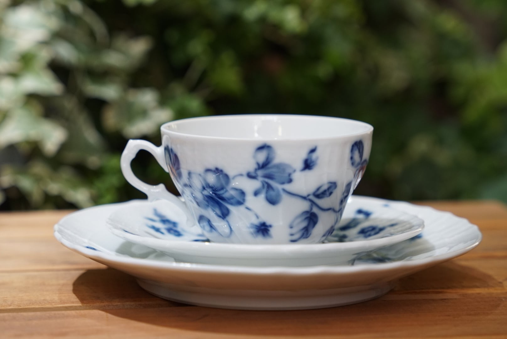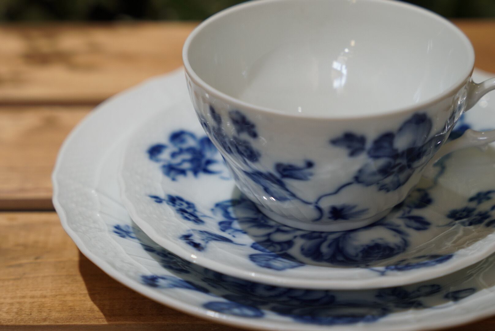 ローズブルー ティーカップ&ソーサー + ケーキ皿セット