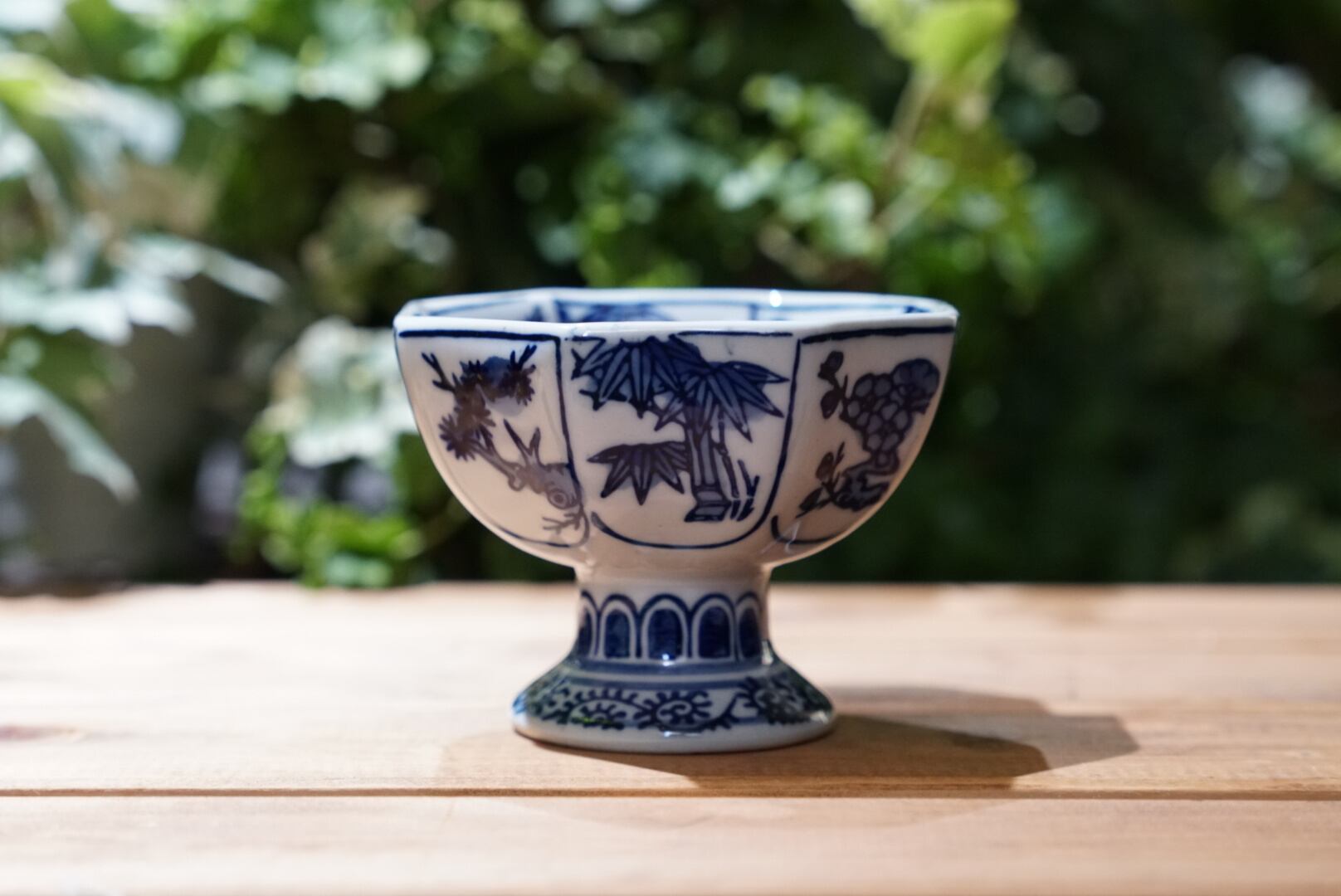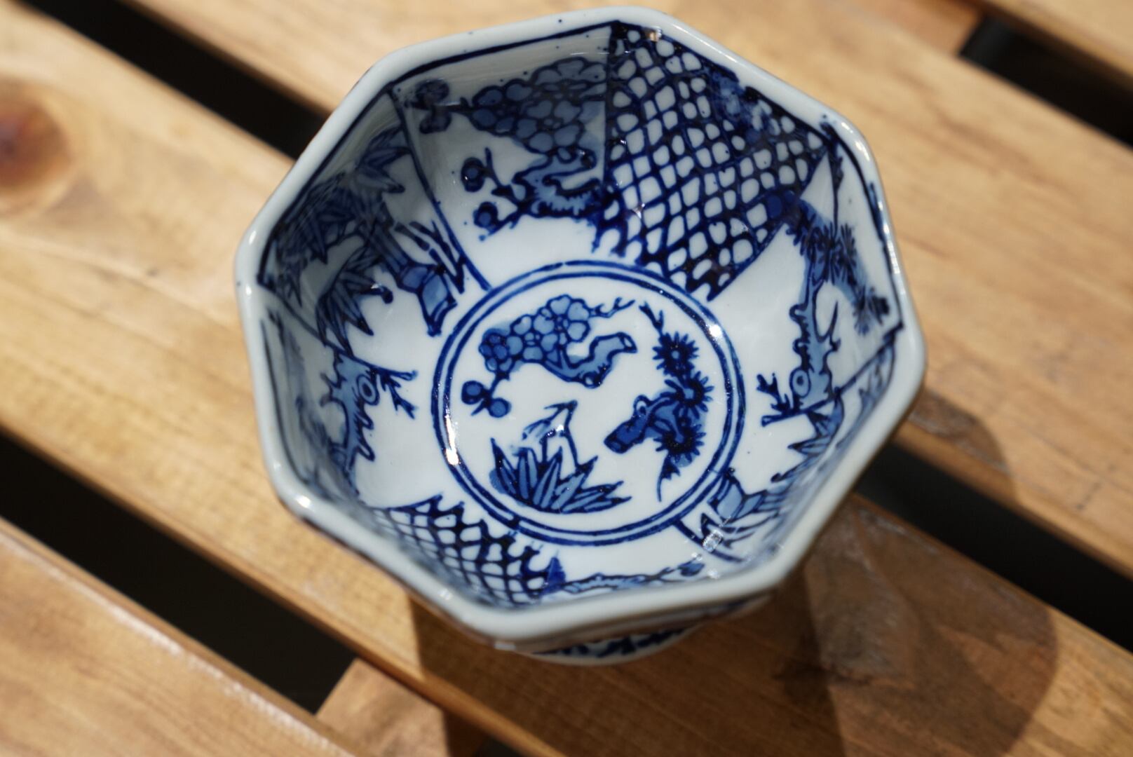 伝統的な“松・竹・梅”が、やわらかな藍色の染付けで描かれた