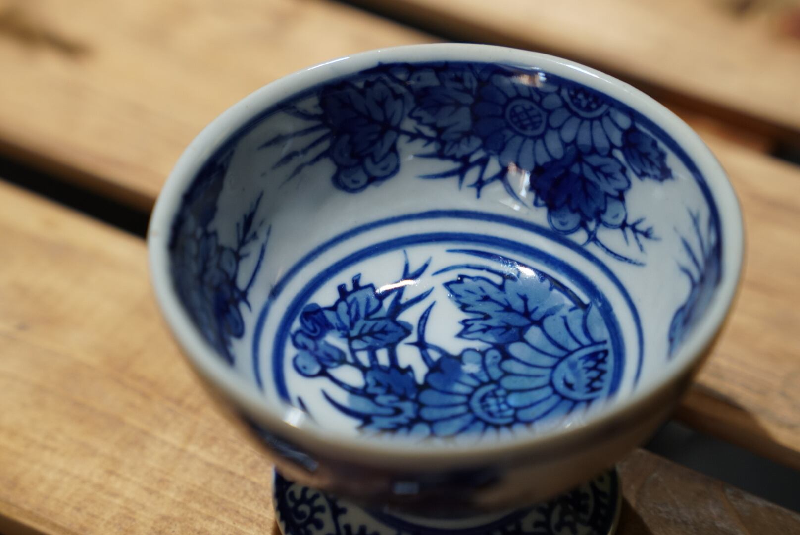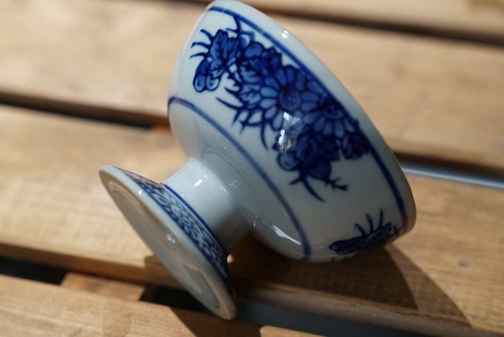 可憐な菊の花が染付で描かれた小ぶりのアイスカップ。