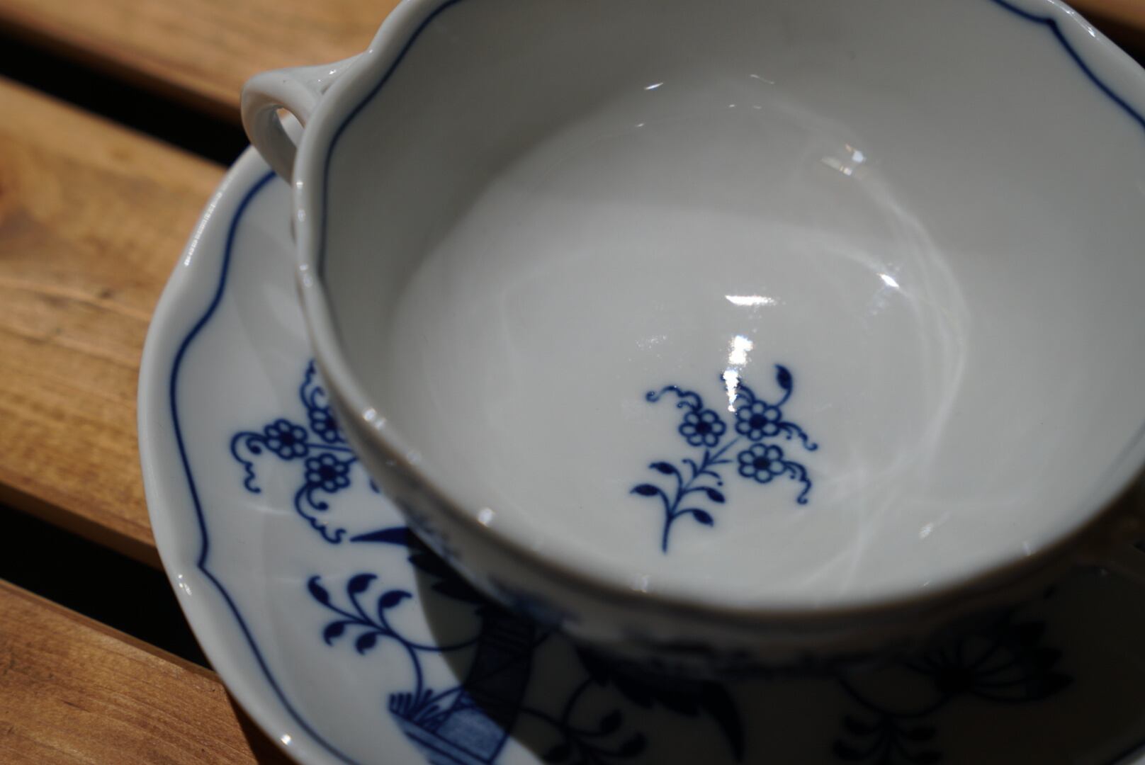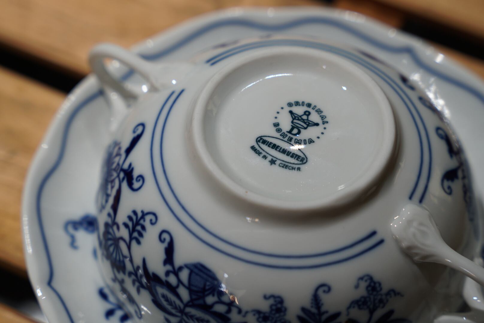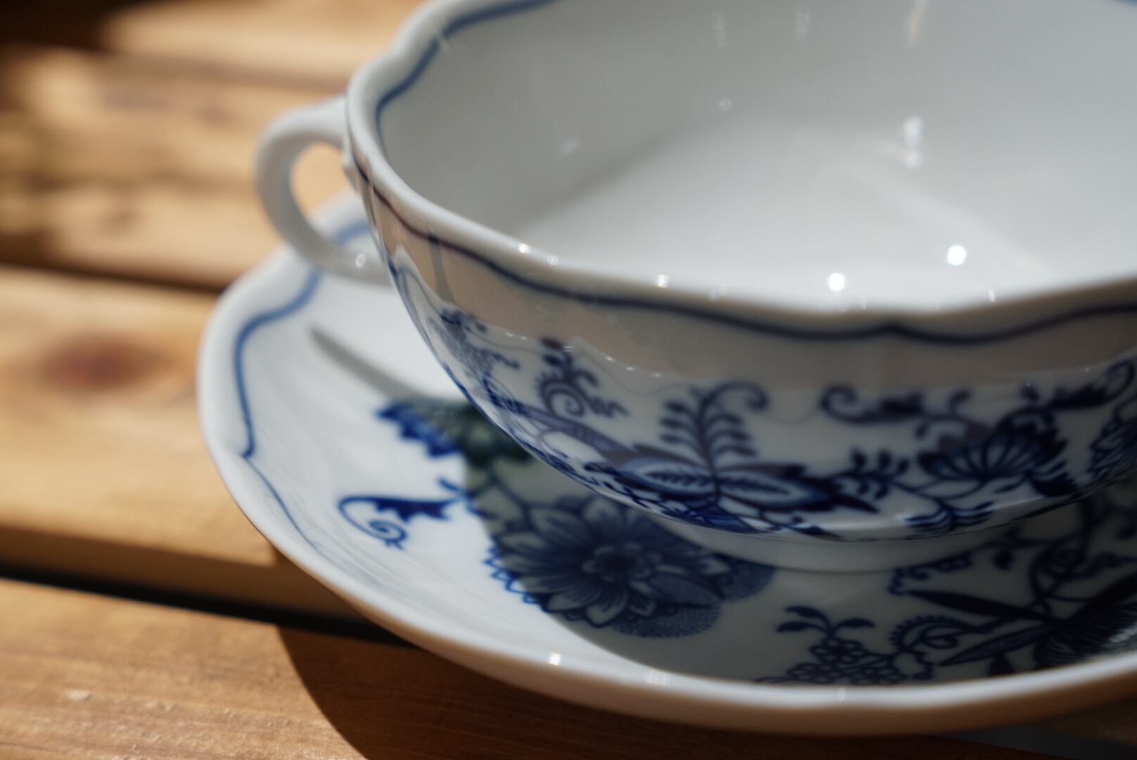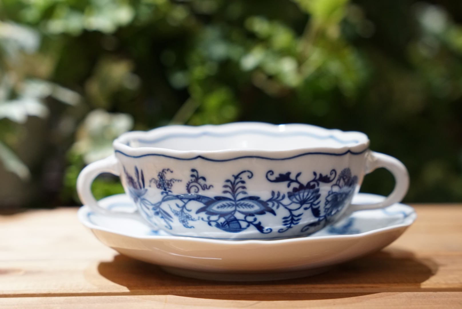 ガールズバード社製、ボヘミアの「ブルーオニオン」スープカップ&ソーサー。