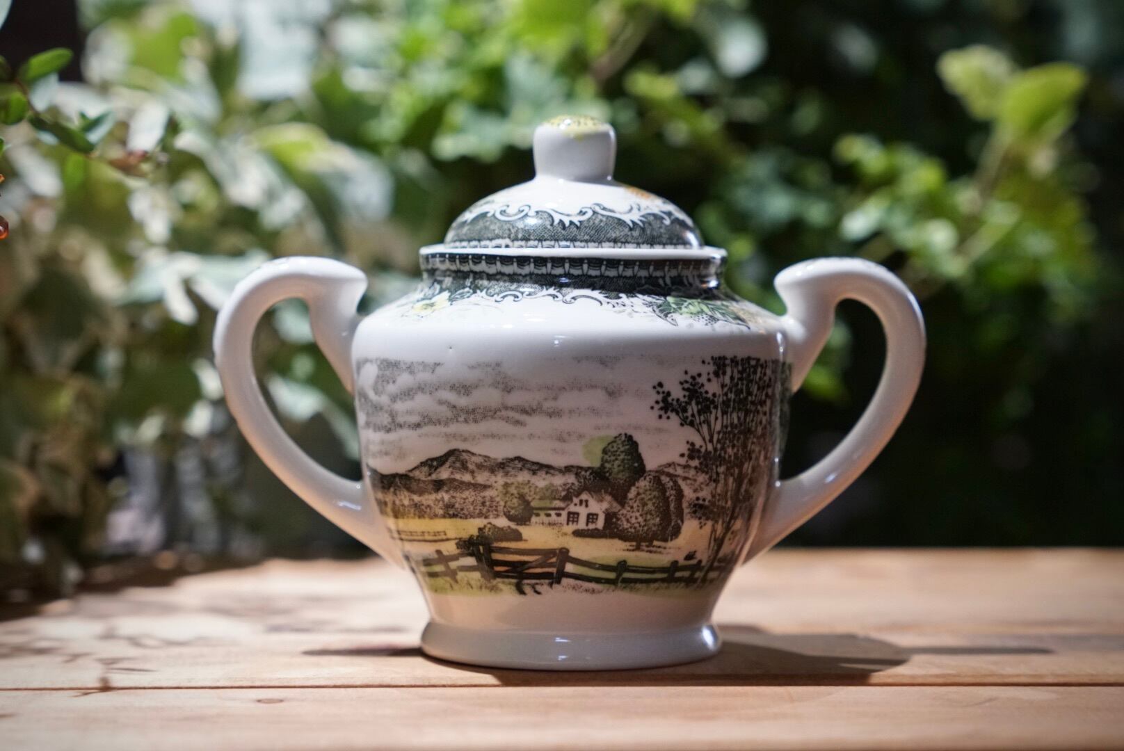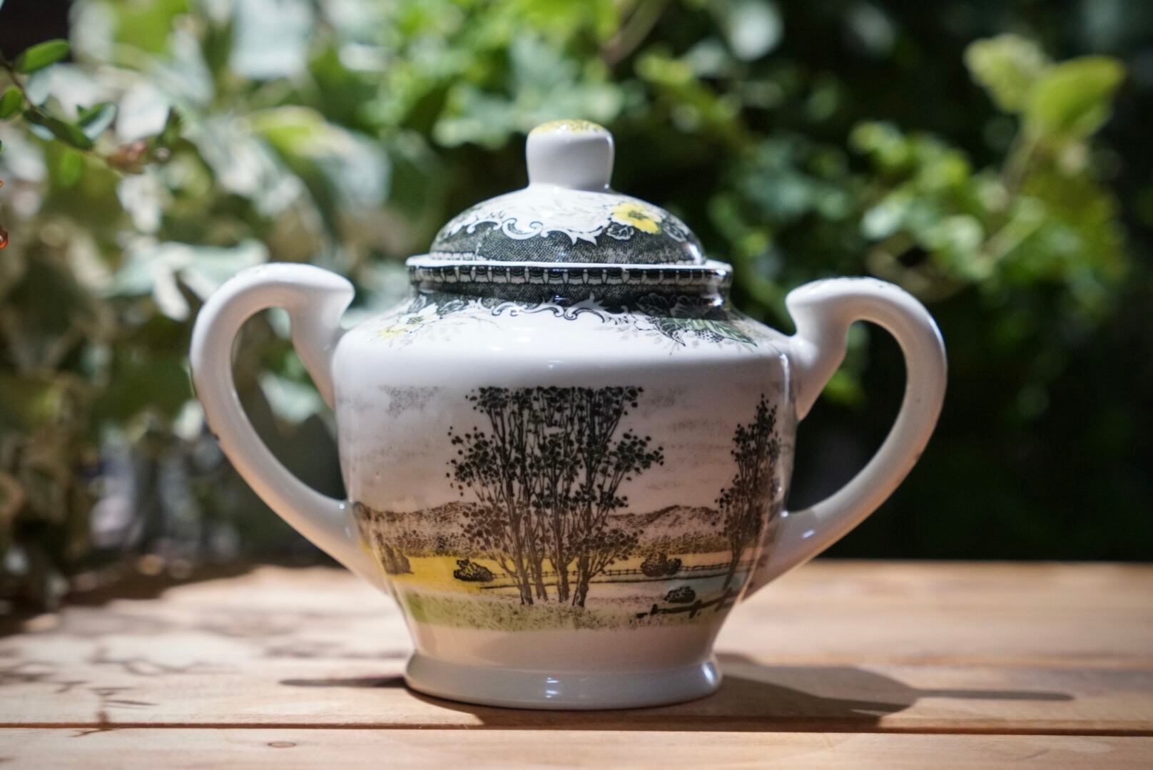 田舎風景が素敵な昭和レトロなNIKKOのシュガーポット