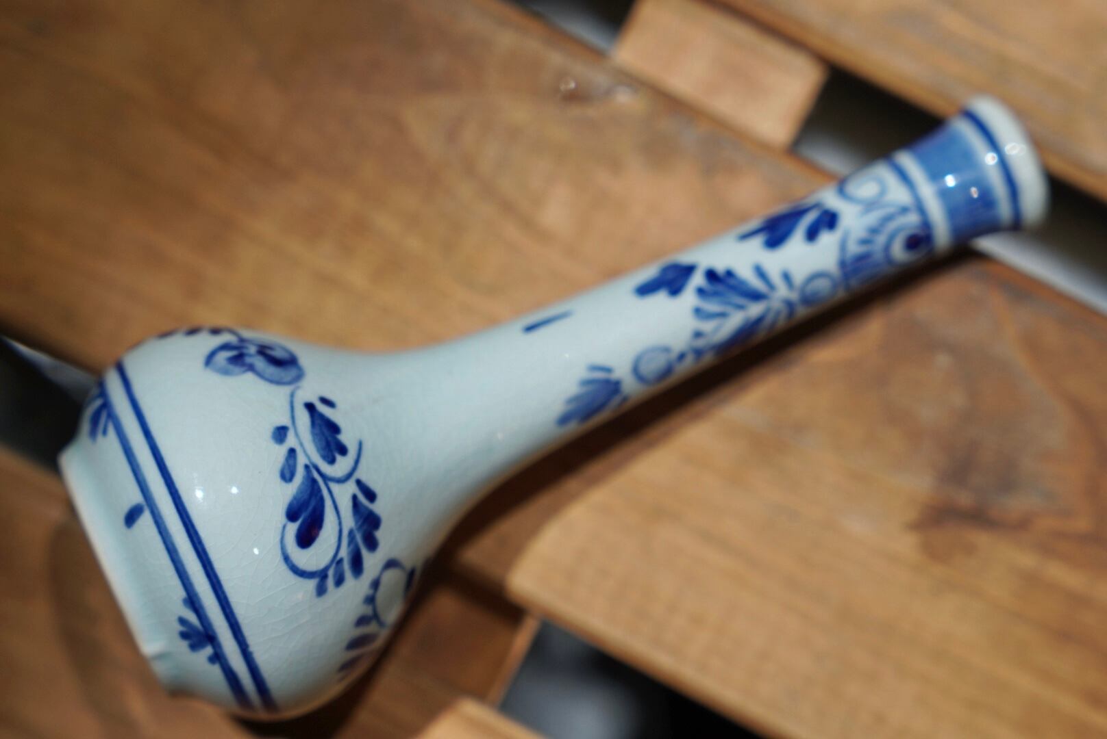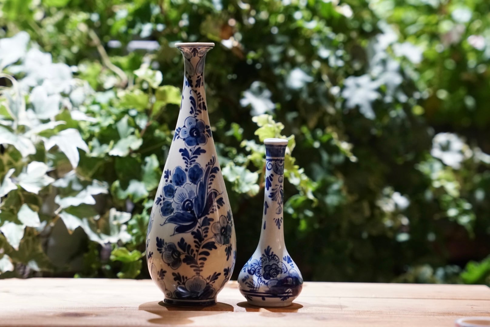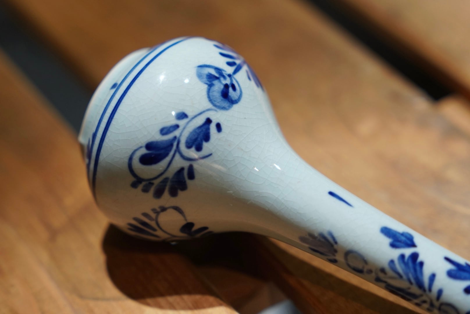 17世紀のオランダで生まれた「デルフト焼き」は、東洋磁器の白と藍に魅せられた職人たちの情熱から誕生しました。本品は、その伝統を受け継ぐ、小ぶりで愛らしい高さ約14cmの一輪挿しです。