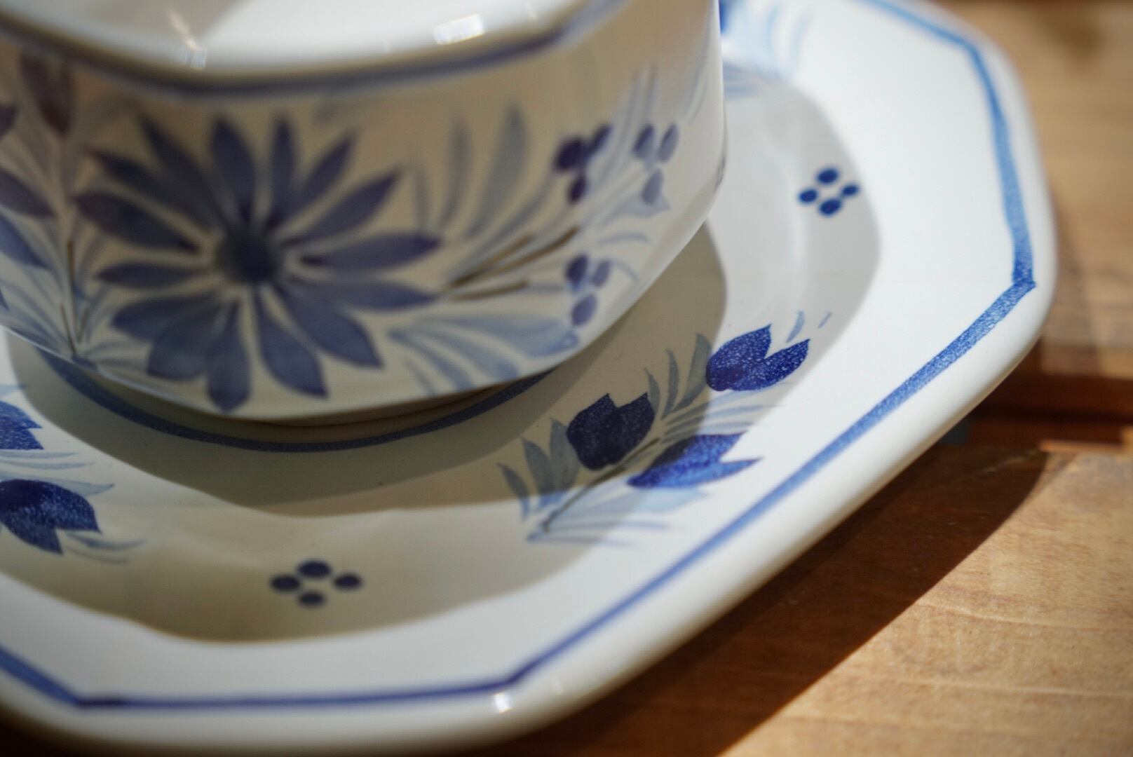 1690年から続くフランス最古の窯のひとつ、アンリオ社で、職人がひとつひとつに心を込めて絵付けをされたこのカップが、どんな旅をしてきたのか…そんな物語に想いを馳せるのも、また一興です。