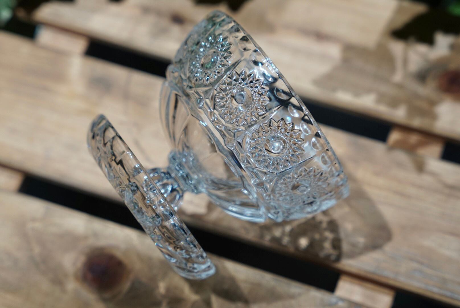 食卓に凍れる光の万華鏡を ボヘミアのコンポート皿a