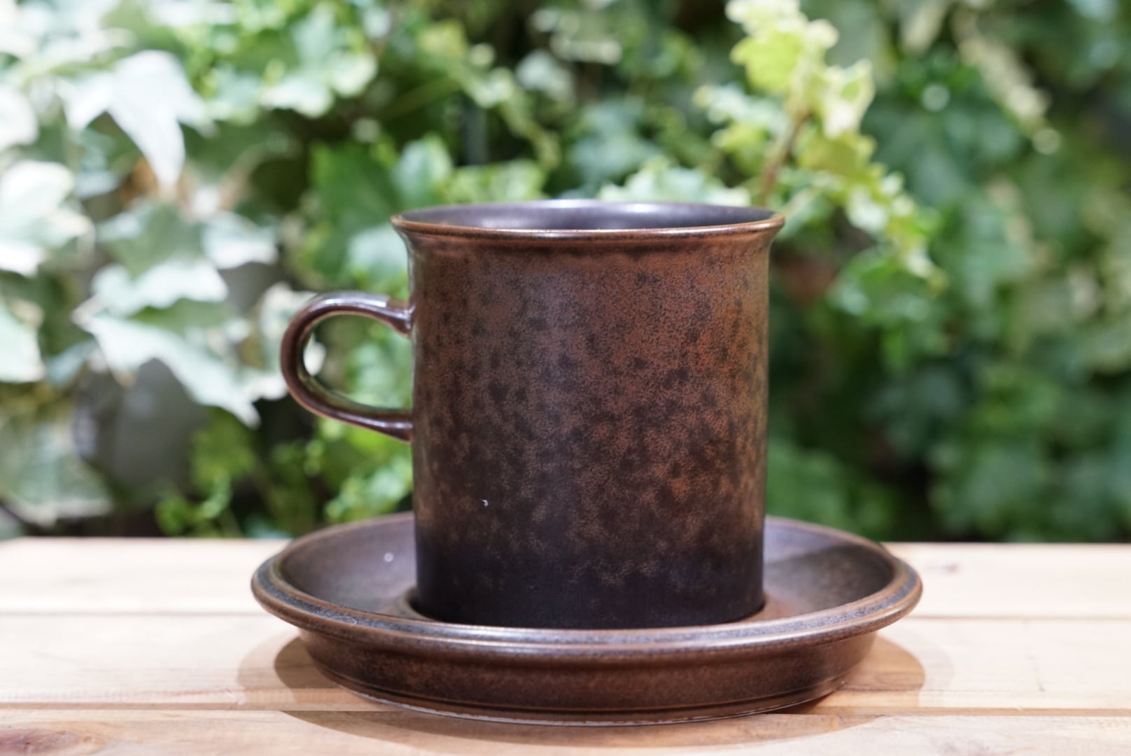 フィンランドの名窯アラビア社を代表するシリーズ「ルスカ」は、1960年代にデザイナー、ウラ・プロコッペ(Ulla Procope)によって誕生しました。シリーズ名の“RUSKA”はフィンランド語で「秋の色」を意味し、北欧の森を染める紅葉や深い木の色を思わせる釉薬が特徴です。