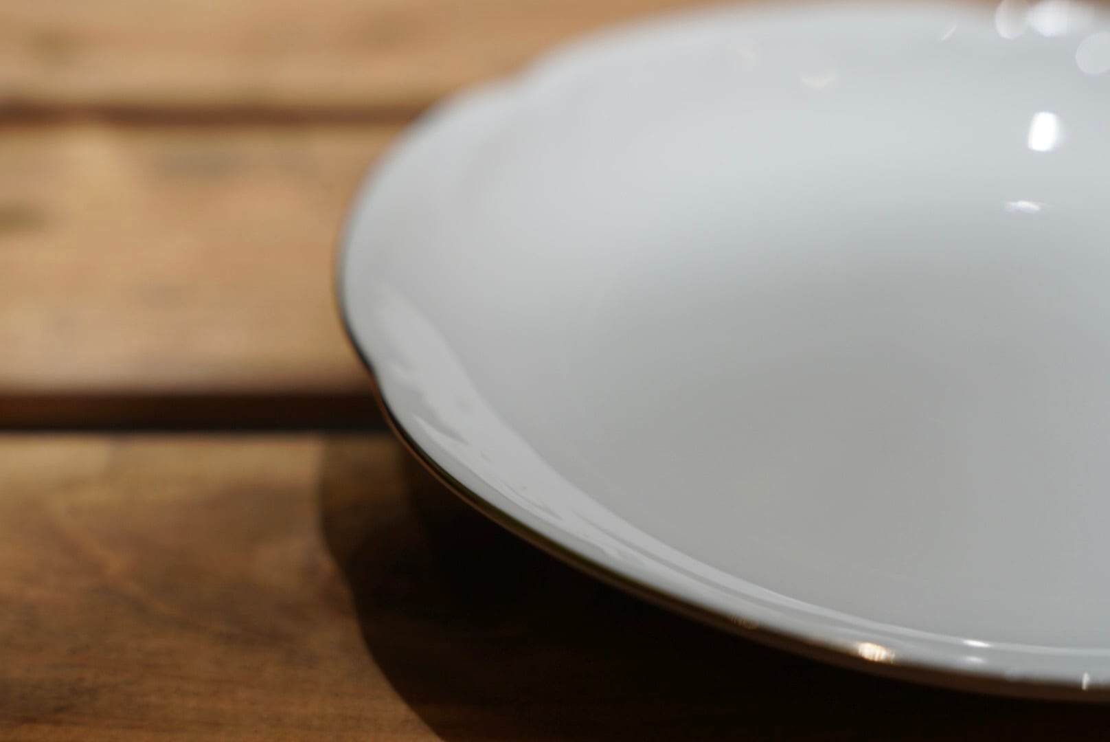 純白の磁肌に、職人の手で一つひとつ丁寧に施された金彩が、控えめながらも格調高い存在感を放ちます。金縁は大倉陶園ならではの深みと輝きがあり、光の加減で優雅に表情を変えます。