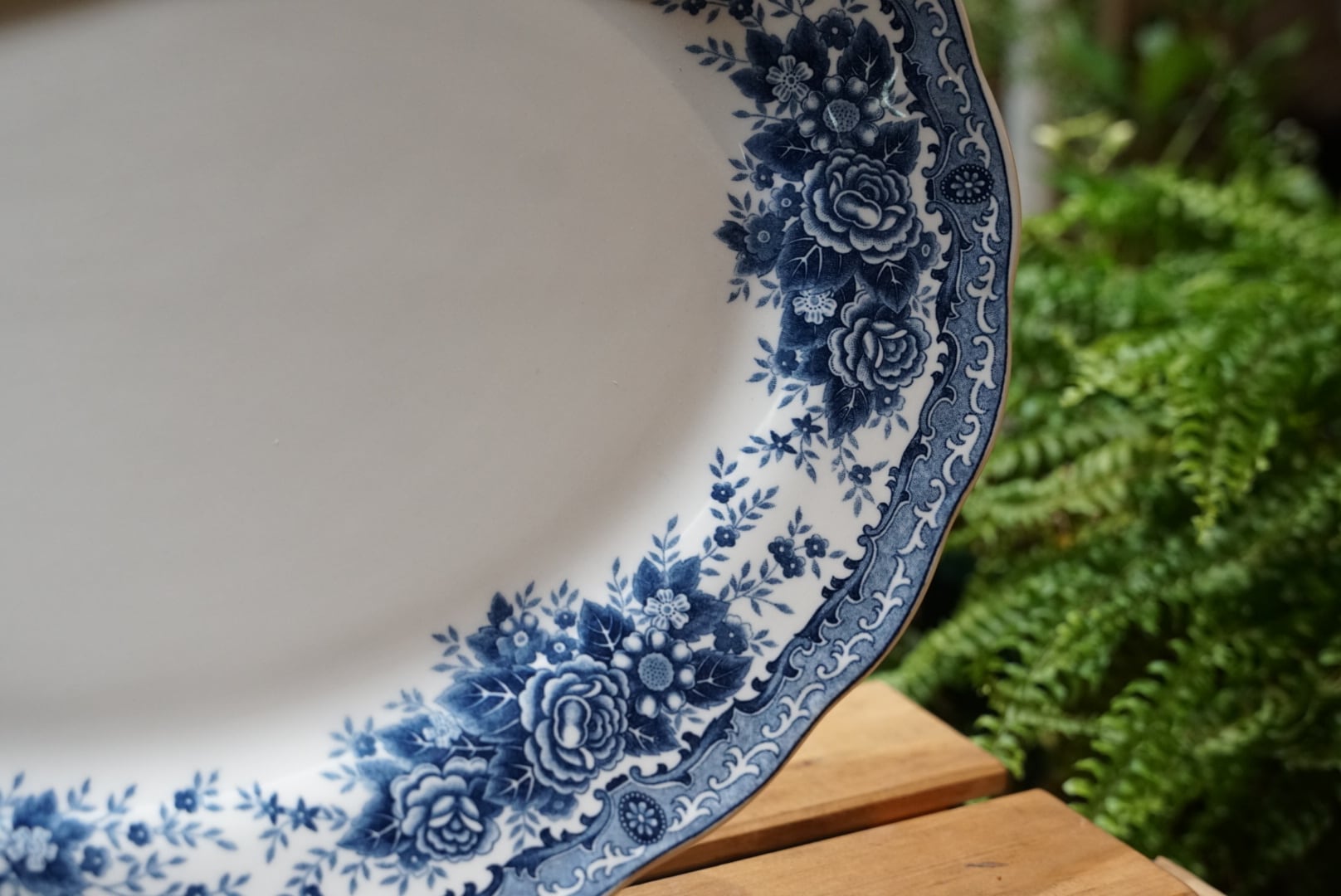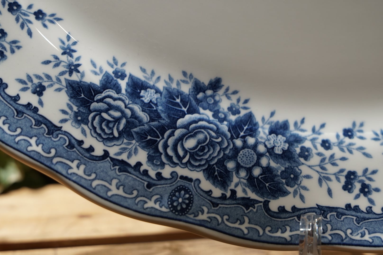 繊細で深みのある藍色が魅力で無数に咲き誇る薔薇のブーケが、優雅なタペストリーのように皿の縁を飾り、食卓にロマンティックな雰囲気をもたらします。