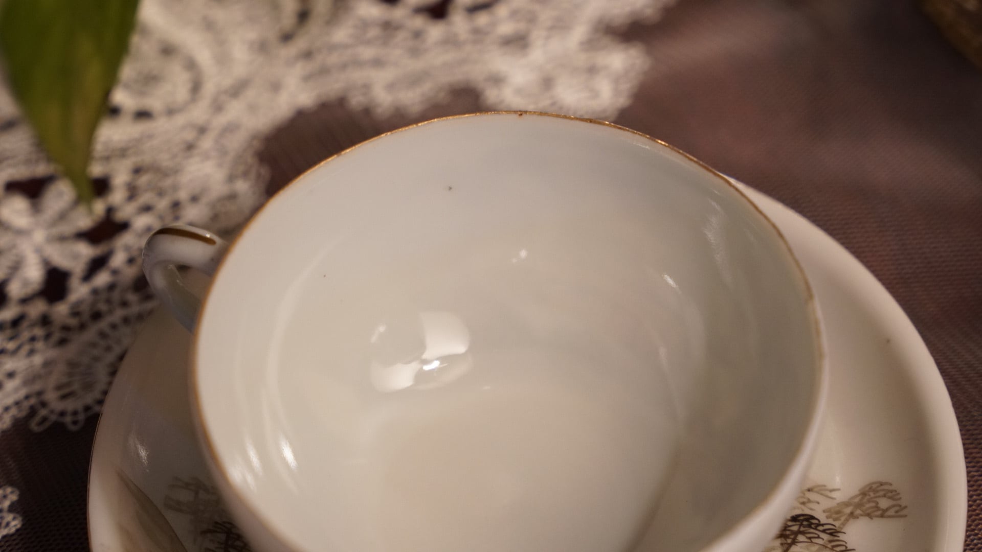 明治期から大正期にかけて、海外市場に向けて制作された日本のエッグシェル磁器のカップ&ソーサーです。薄さは光に透かすと指の影が映るほどで、当時の日本陶磁の高度な轆轤技術と焼成技術がうかがえます。
