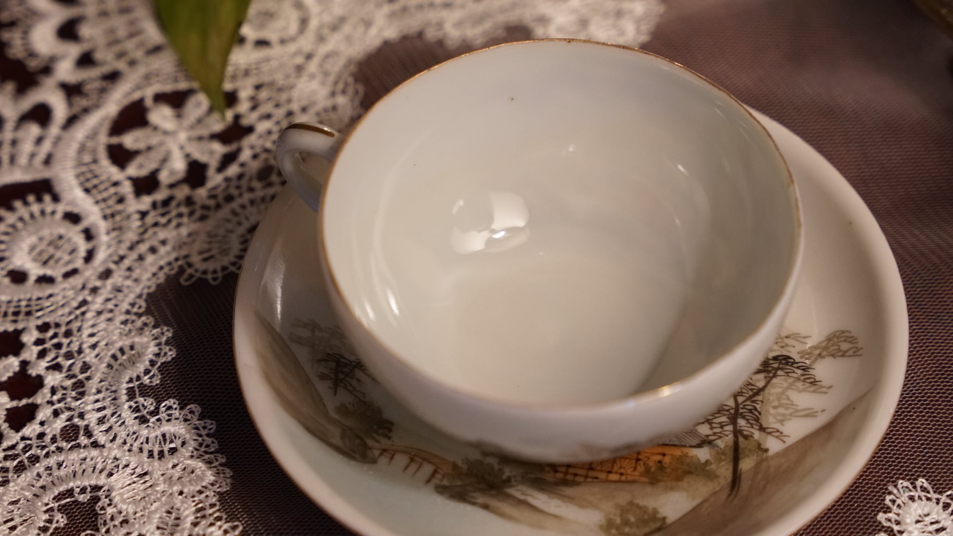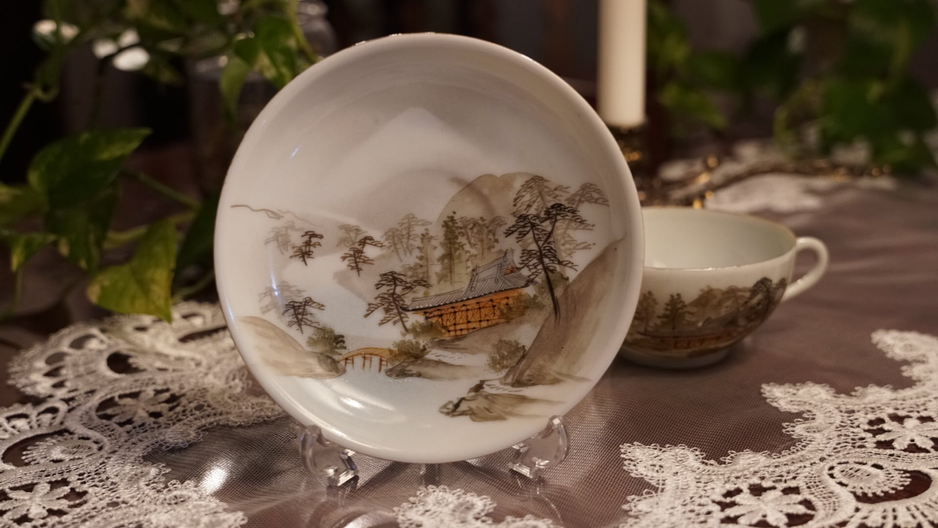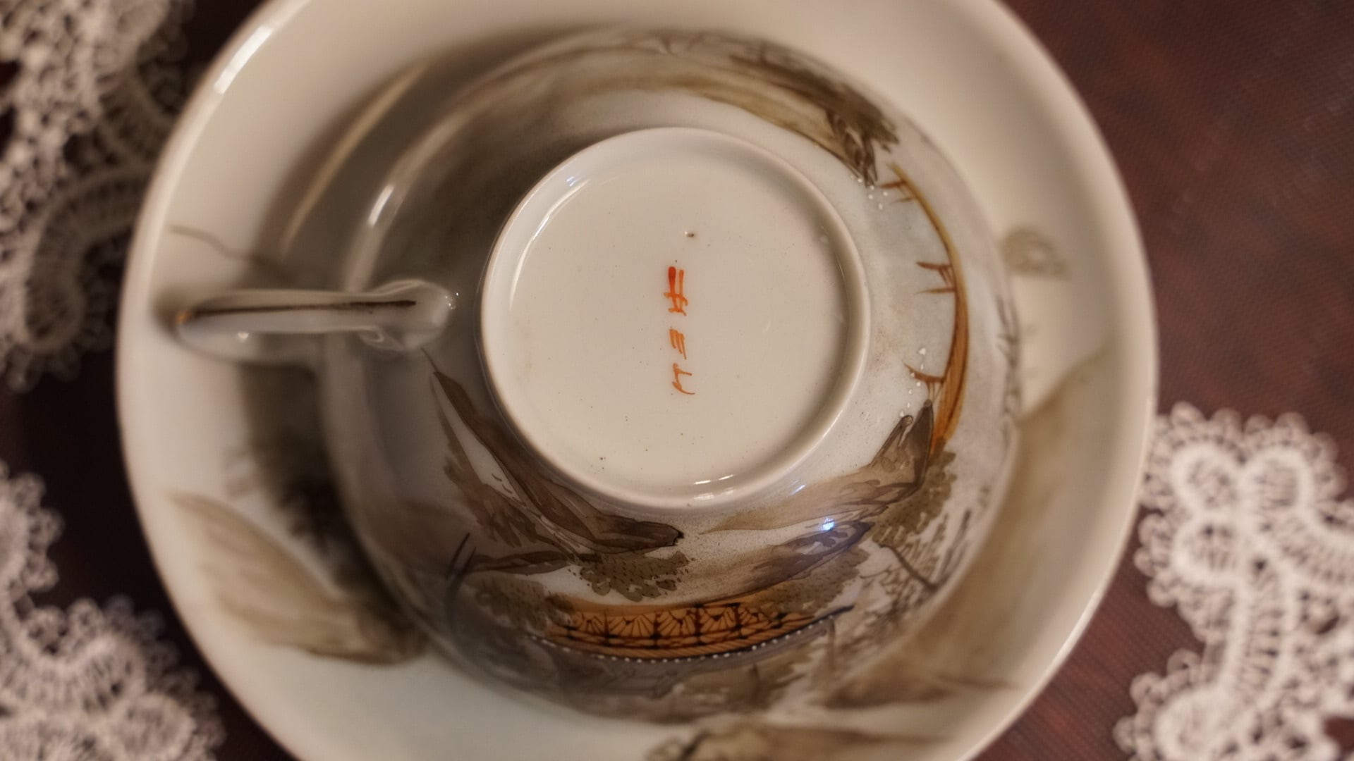 明治期 日本エッグシェル 山水絵 カップ&ソーサー|輸出用 里帰り品