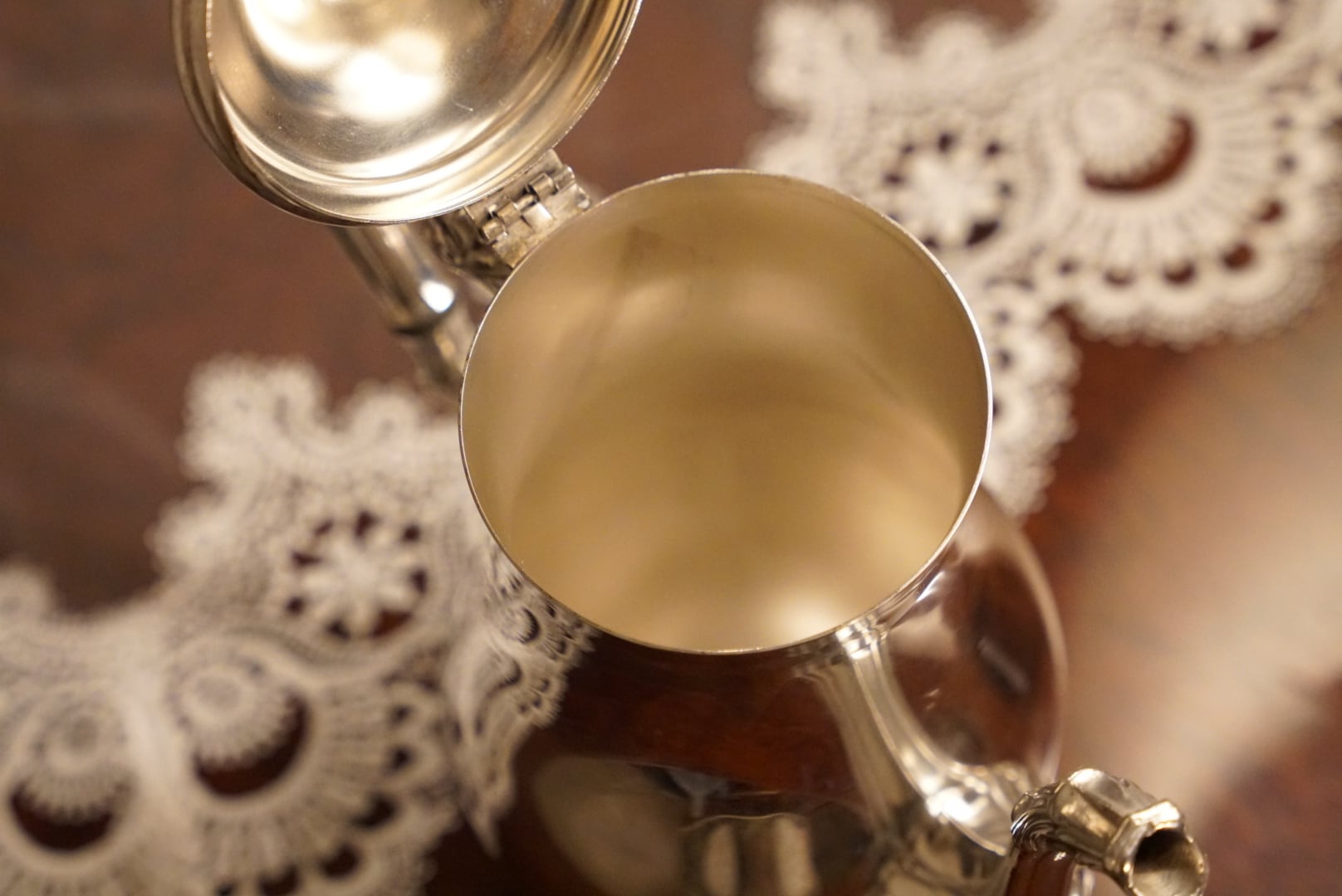 • 歴史の証: トレイやミルクポットは、経年によるメッキの劣化が見られますが、これはアンティークならではの深みのある味わいとしてお楽しみください。