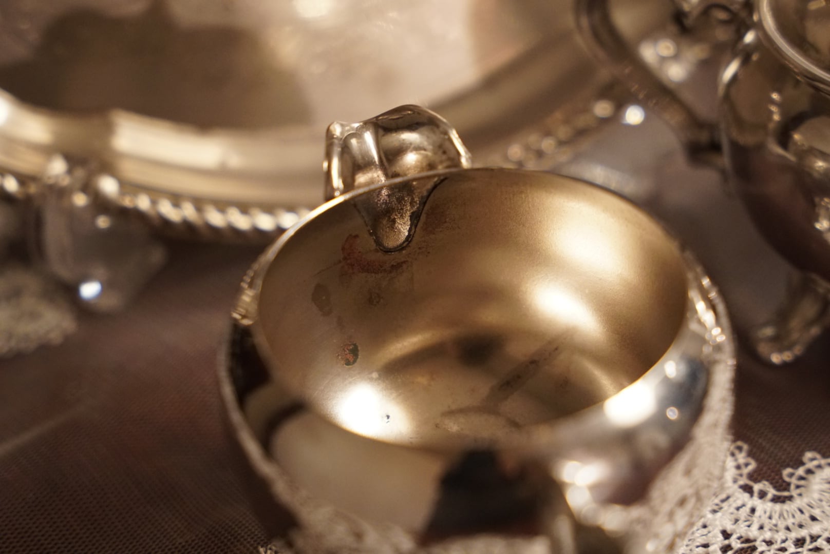 • 専用布での収納: 銀器専用の布(アンチターニッシュクロス)で包んでから収納する。