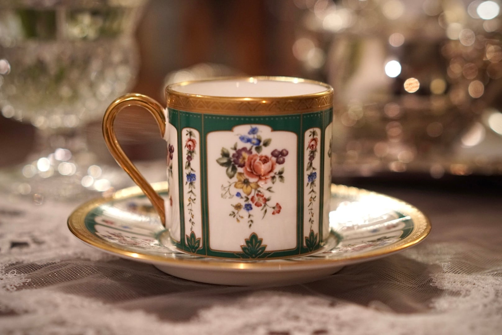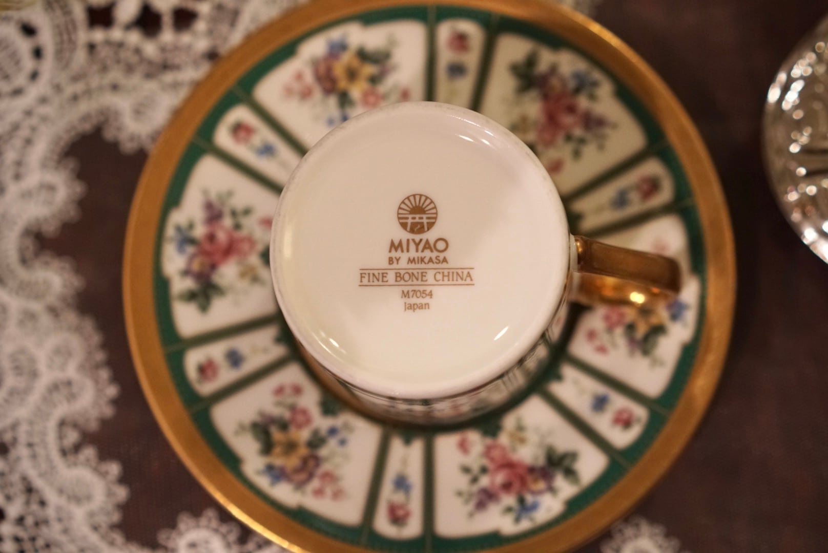 【希少】MIYAO by MIKASA 深緑と金彩の花園 気品溢れるカップ&ソーサー