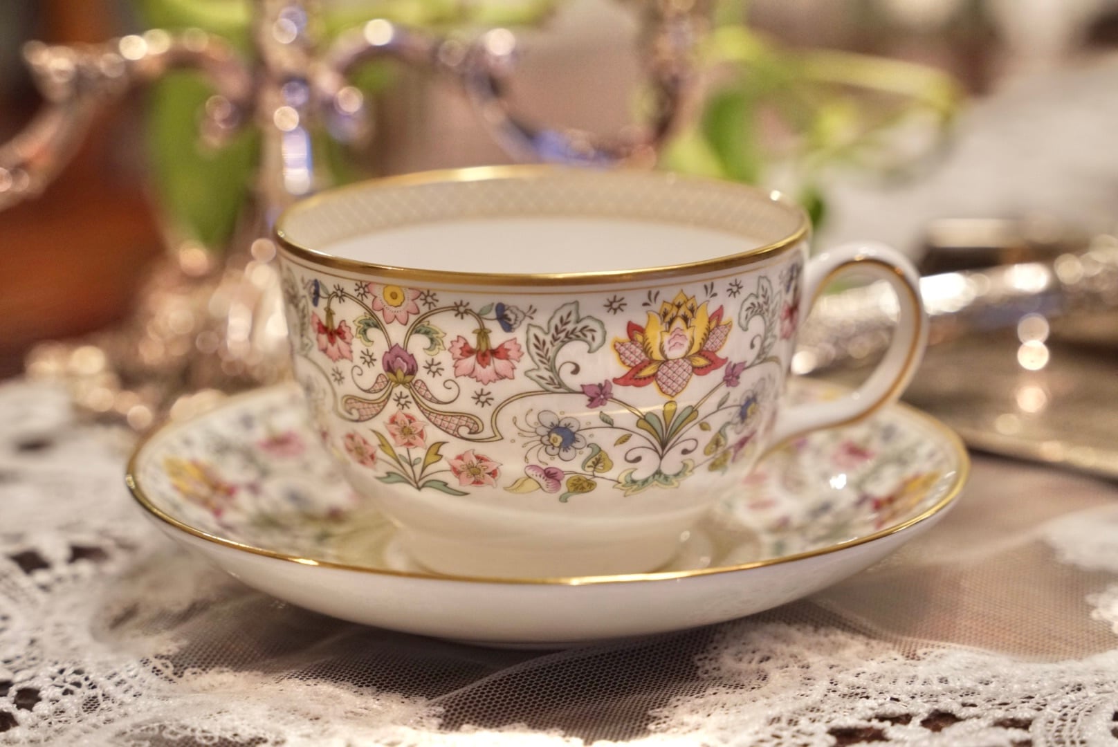 英国の名窯 Minton(ミントン) より、ひときわ華やかな「Majestic Haddon Hall(マジェスティック ハドンホール)」のティーカップ&ソーサーをご紹介します。