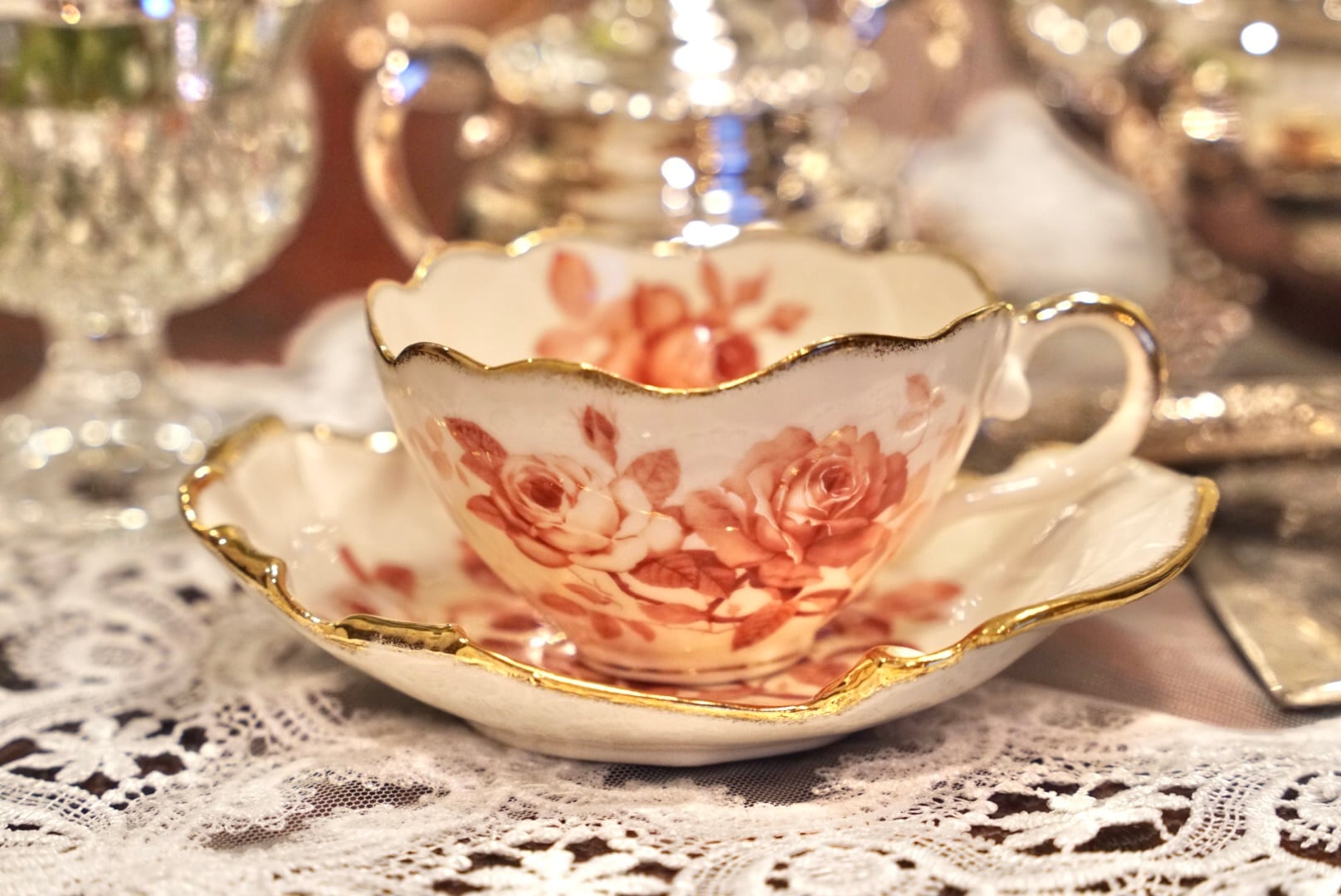 「美しい季節」を意味するその名の通り、ヴィンテージ調のローズがカップの外側から内側へとたっぷりと描かれ、見るたびに優雅な気持ちをもたらしてくれます。