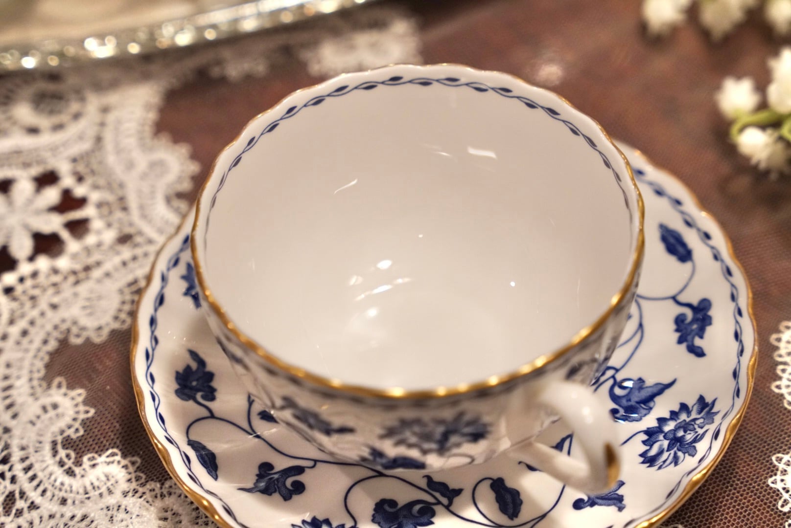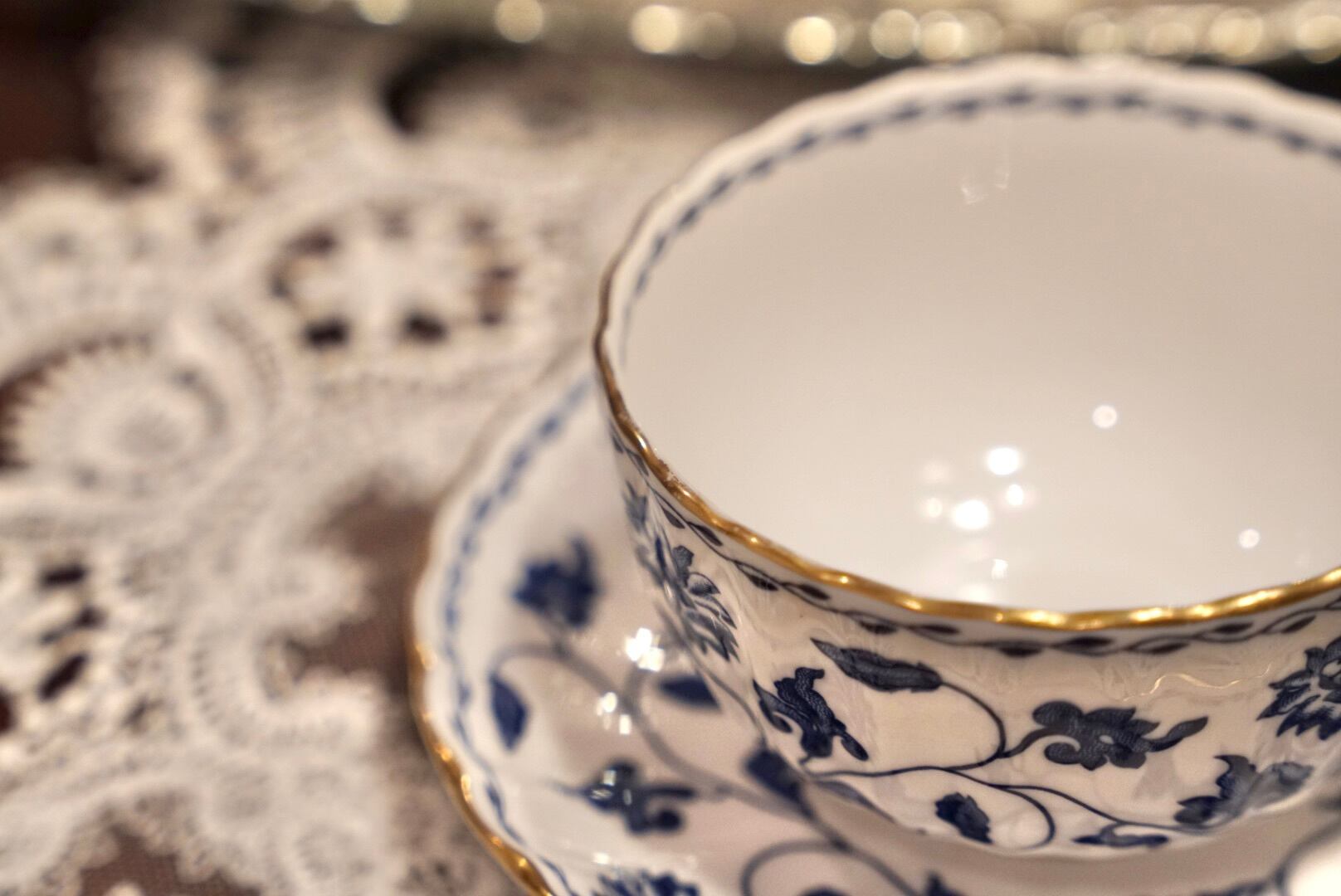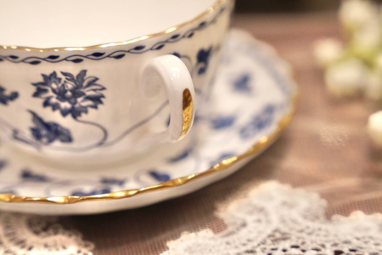 白磁に咲くロイヤルブルーの菊の花は、中国において長寿と幸福のシンボル とされており、日々のティータイムに縁起の良い想いを添えてくれます。