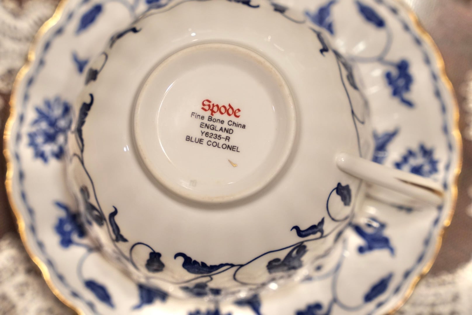 【2客セット】Spode スポード Blue Colonel ブルーコロネル ティーカップ&ソーサー 菊 金彩 ファインボーンチャイナ イングランド製 ヴィンテージ