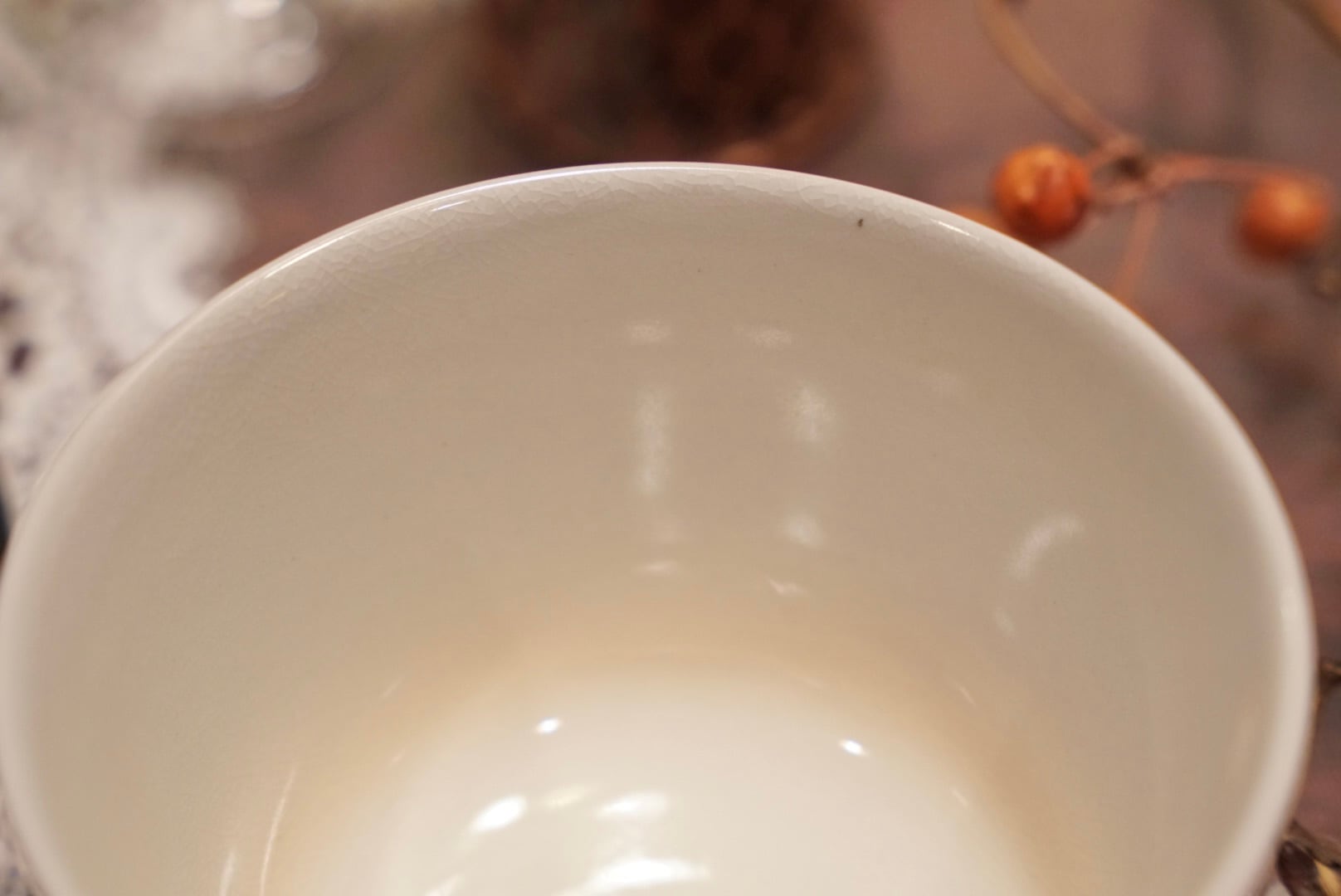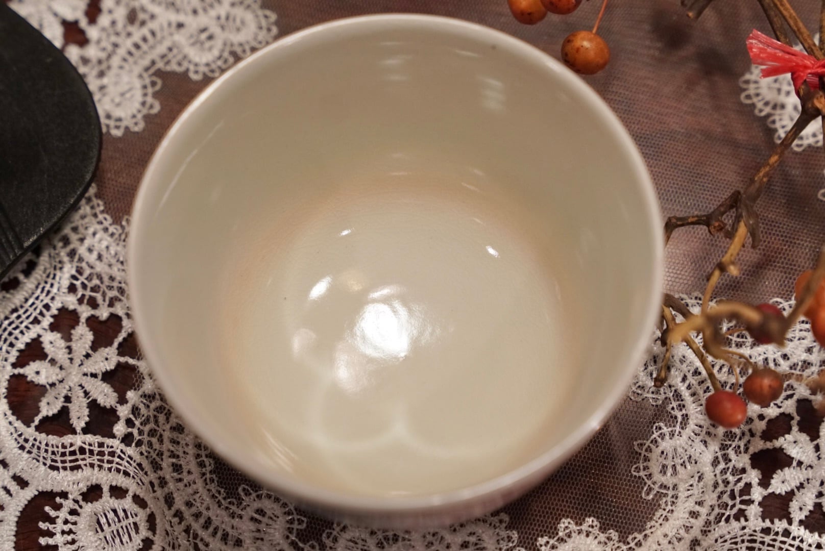 手に取ると感じる程よい重さと、温かみのある乳白色の器肌——京焼ならではの上品な風合いが、抹茶の緑を一層美しく引き立てます。