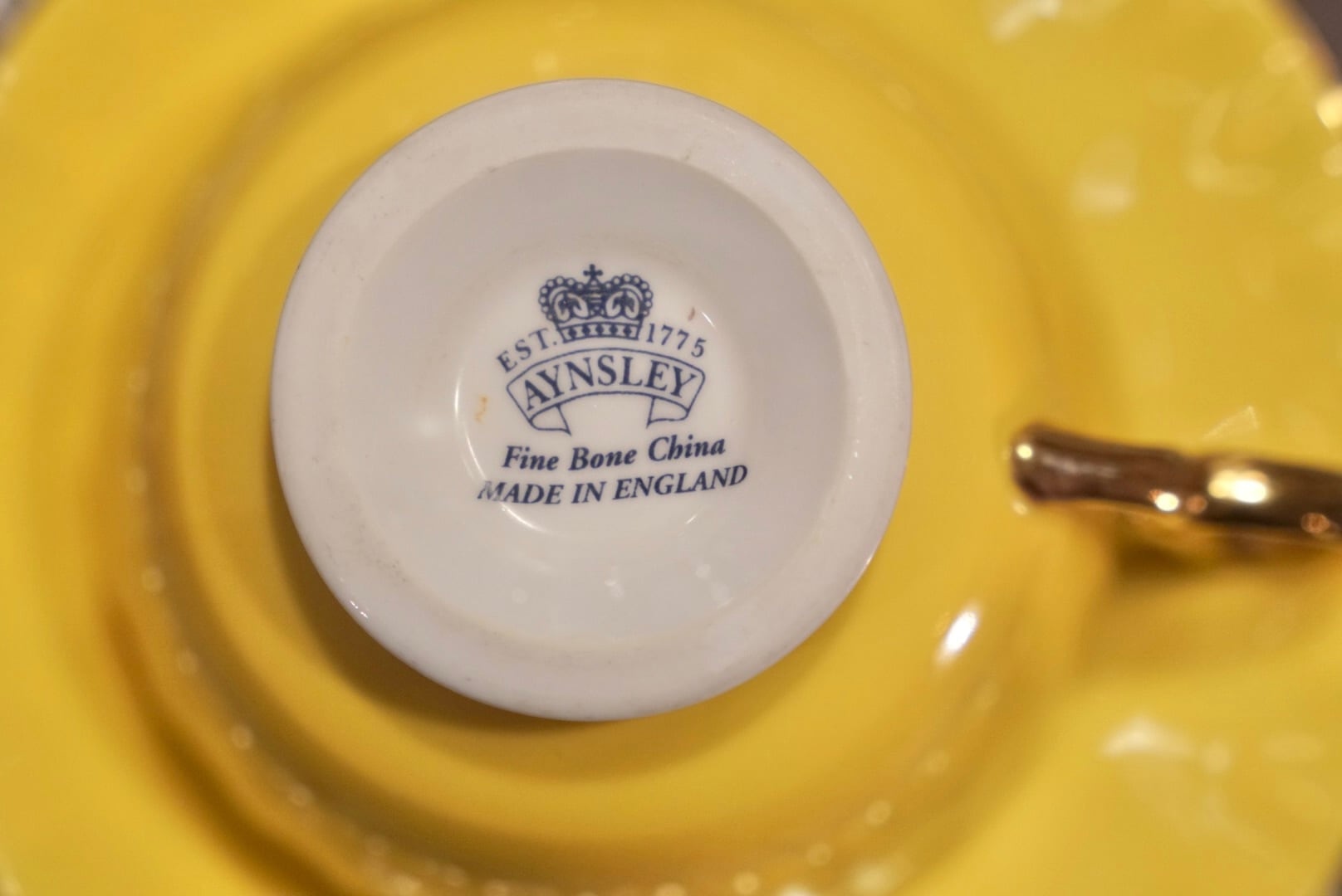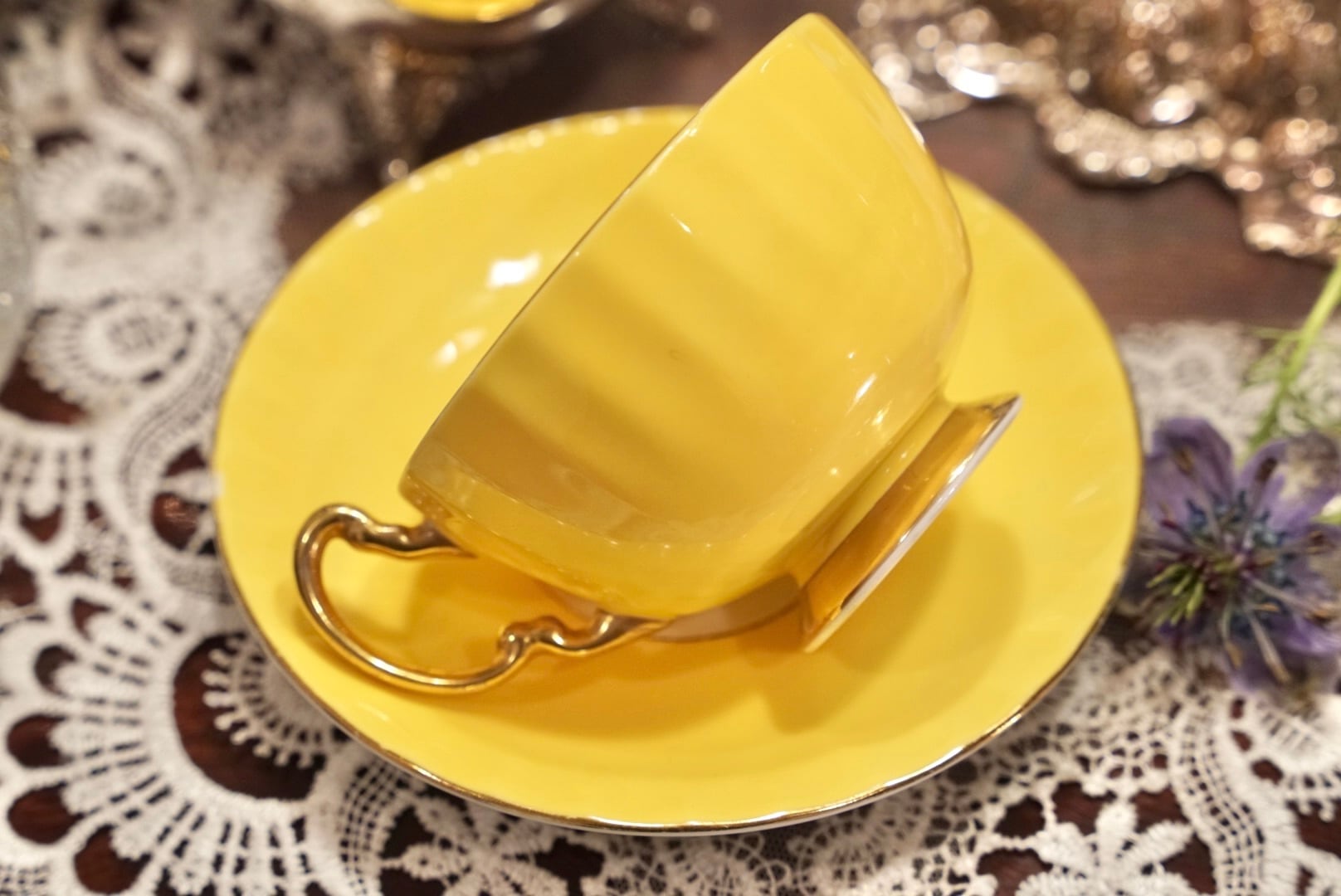 1775年創業、ヴィクトリア女王からも愛された英国の名窯 Aynsley(エインズレー) より、「Orchard Gold(オーチャードゴールド)」の黄色地ティーカップ&ソーサーをご紹介します。