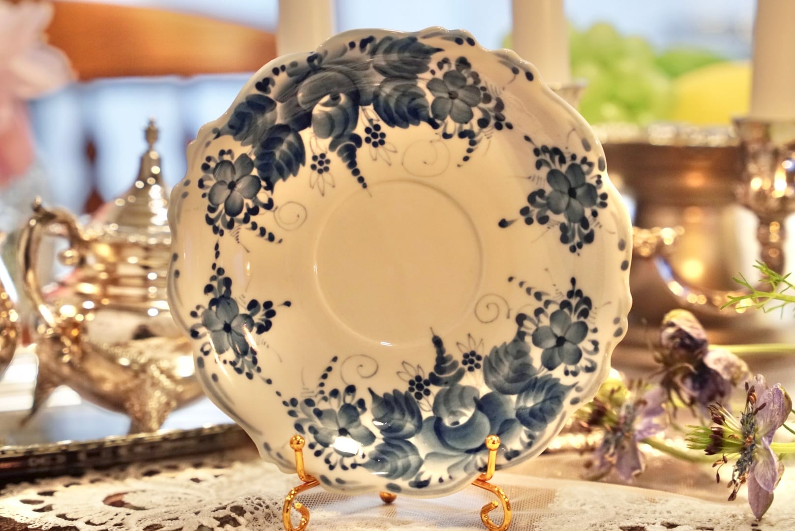 濃淡を巧みに使い分けたコバルトブルーは、遠くデルフトやマイセンにも通じる気品を持ちながら、ロシアならではの大らかで力強い筆致が魅力です。
