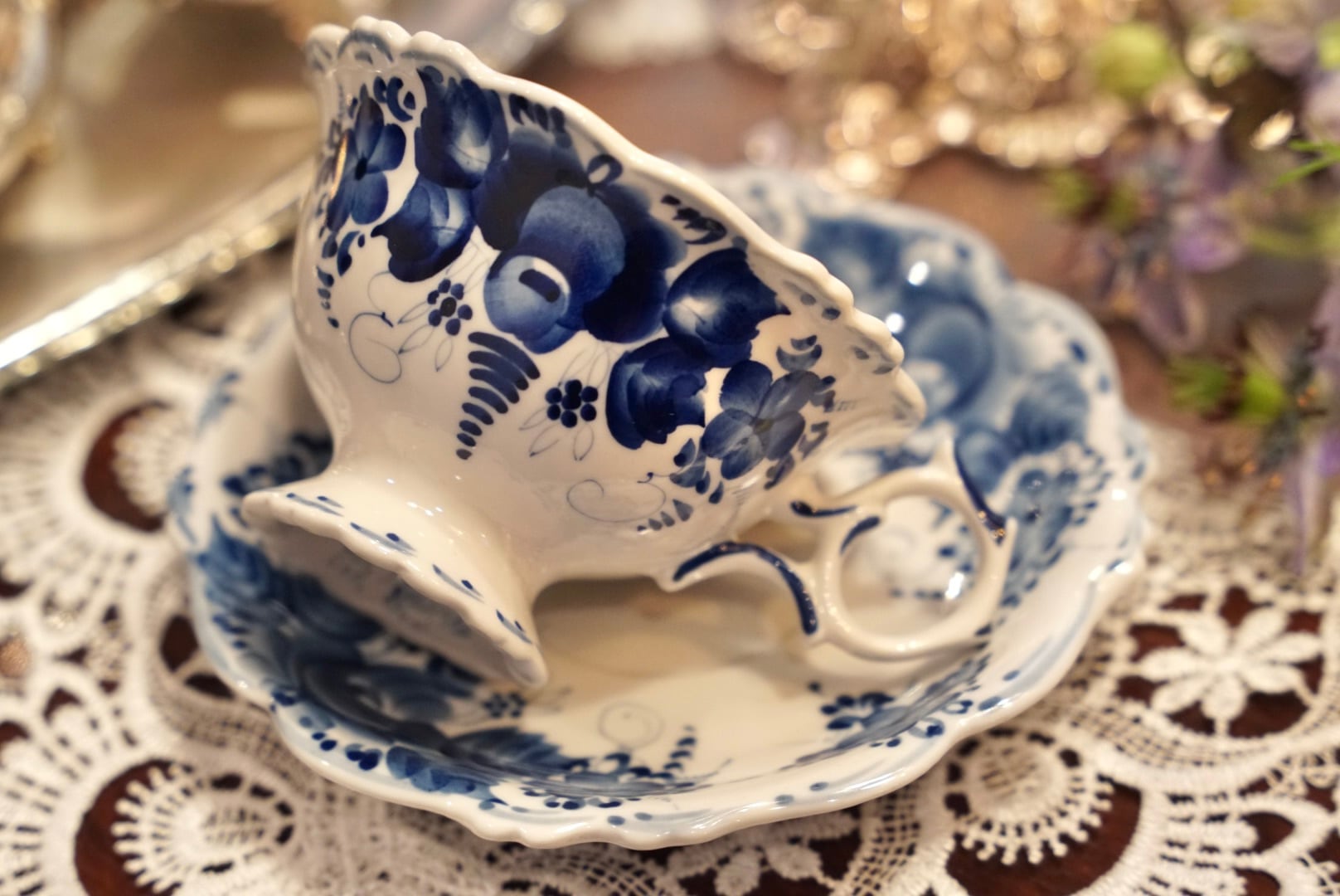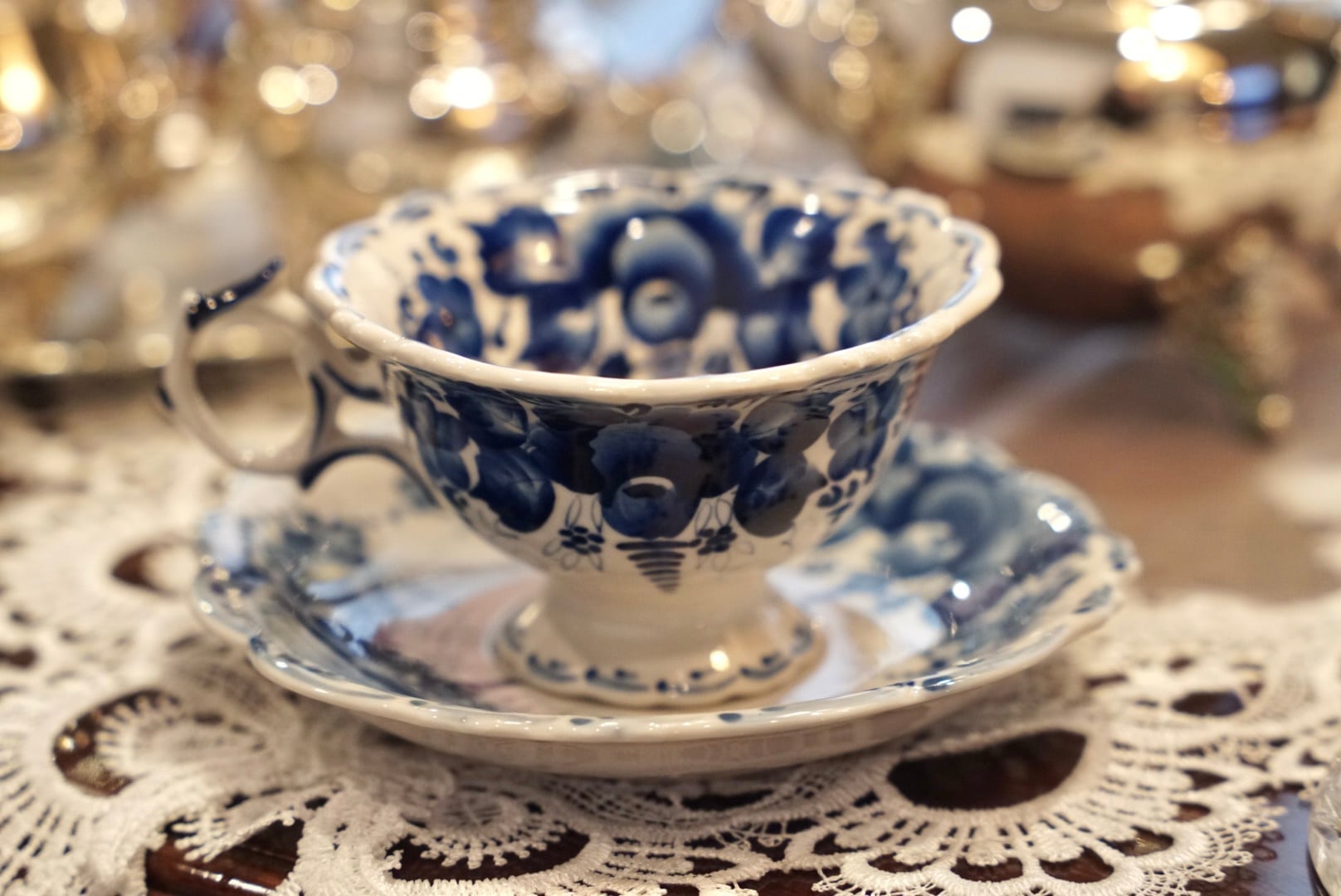 ロシアが世界に誇る手描き磁器の工芸、グジェリ(Гжель)より、コバルトブルーが鮮やかなティーカップ&ソーサーをご紹介します。