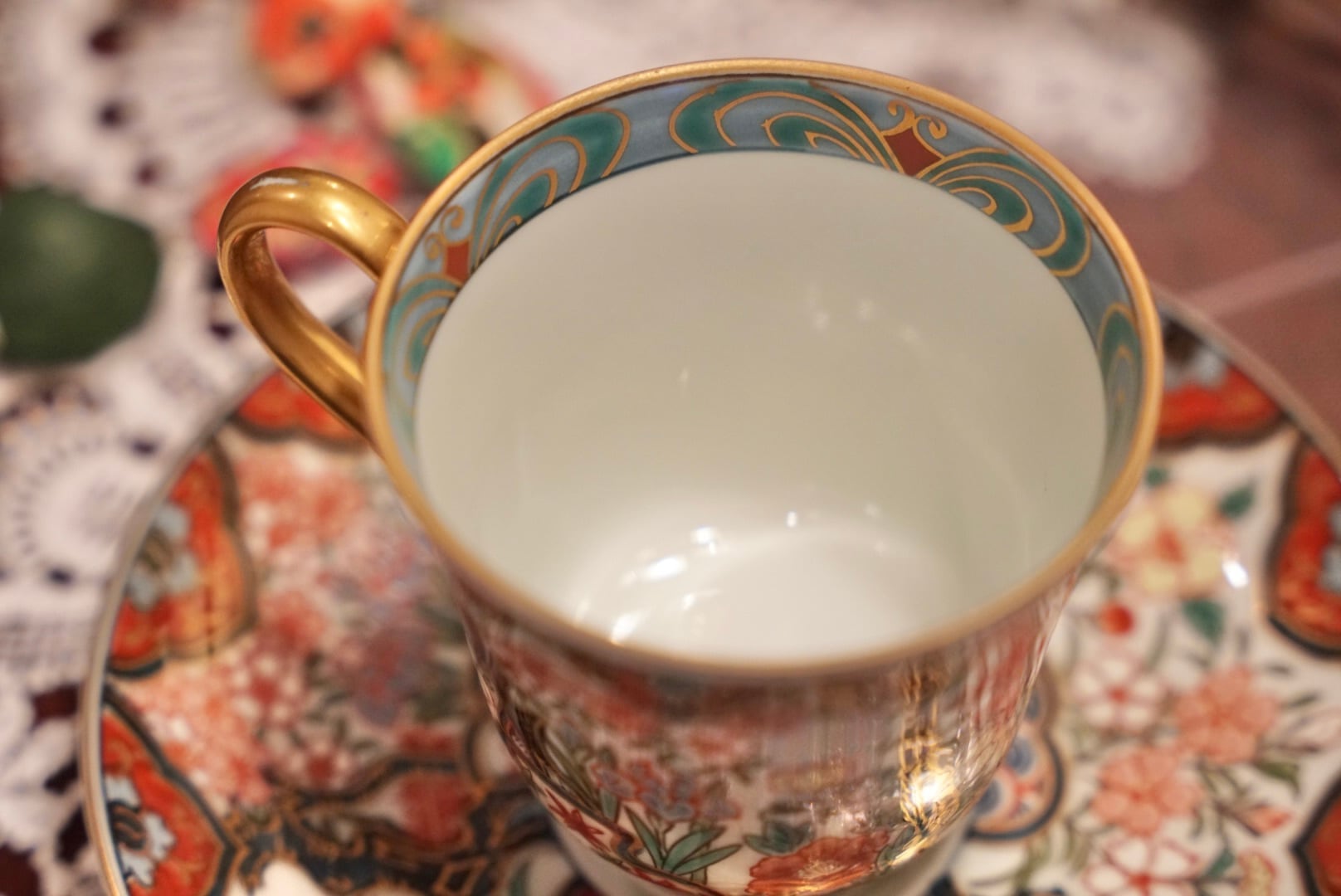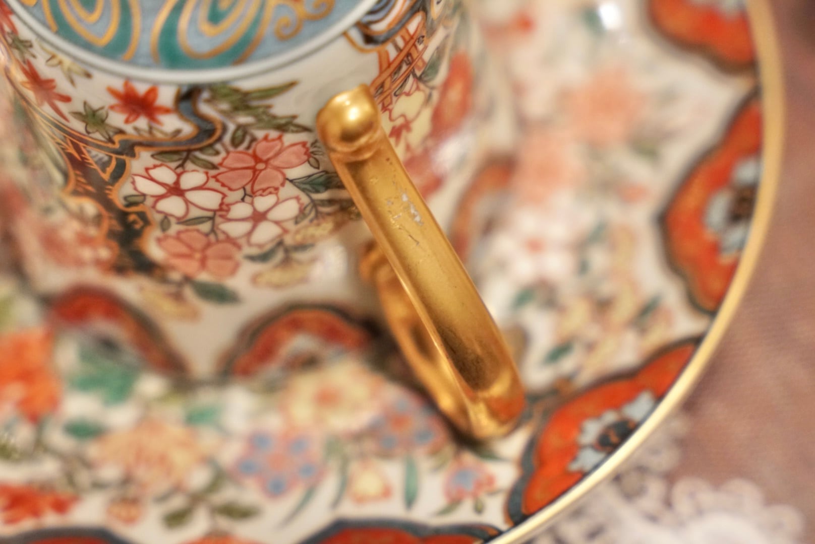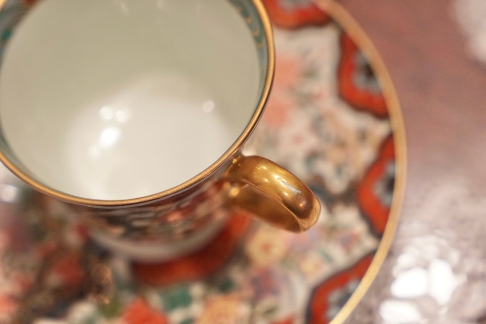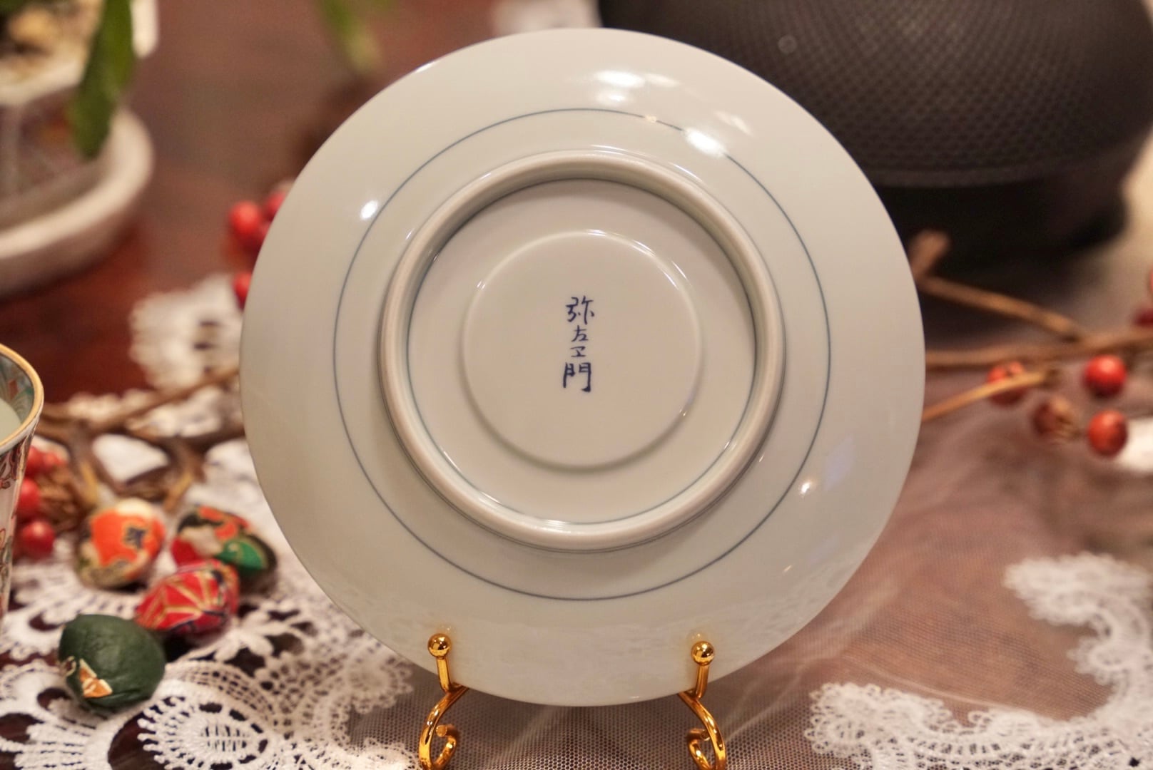 高台裏に「弥左エ門」の銘を持つ、有田焼の色絵金彩ティーカップ&ソーサーをご紹介します。