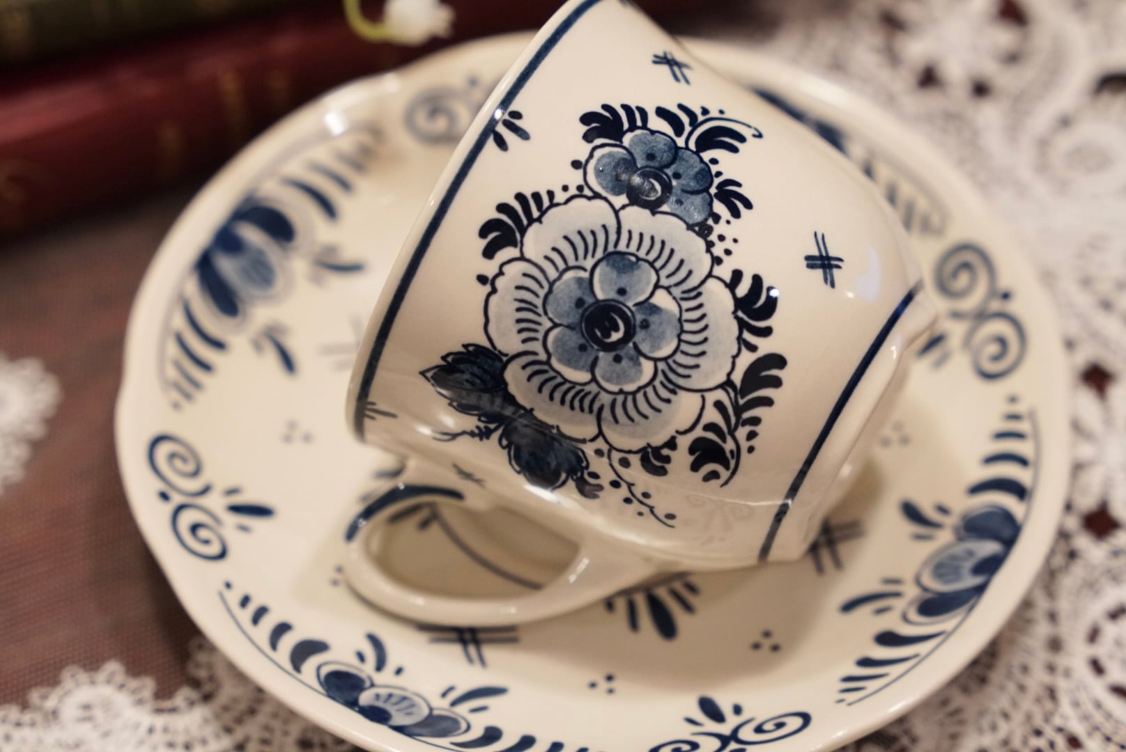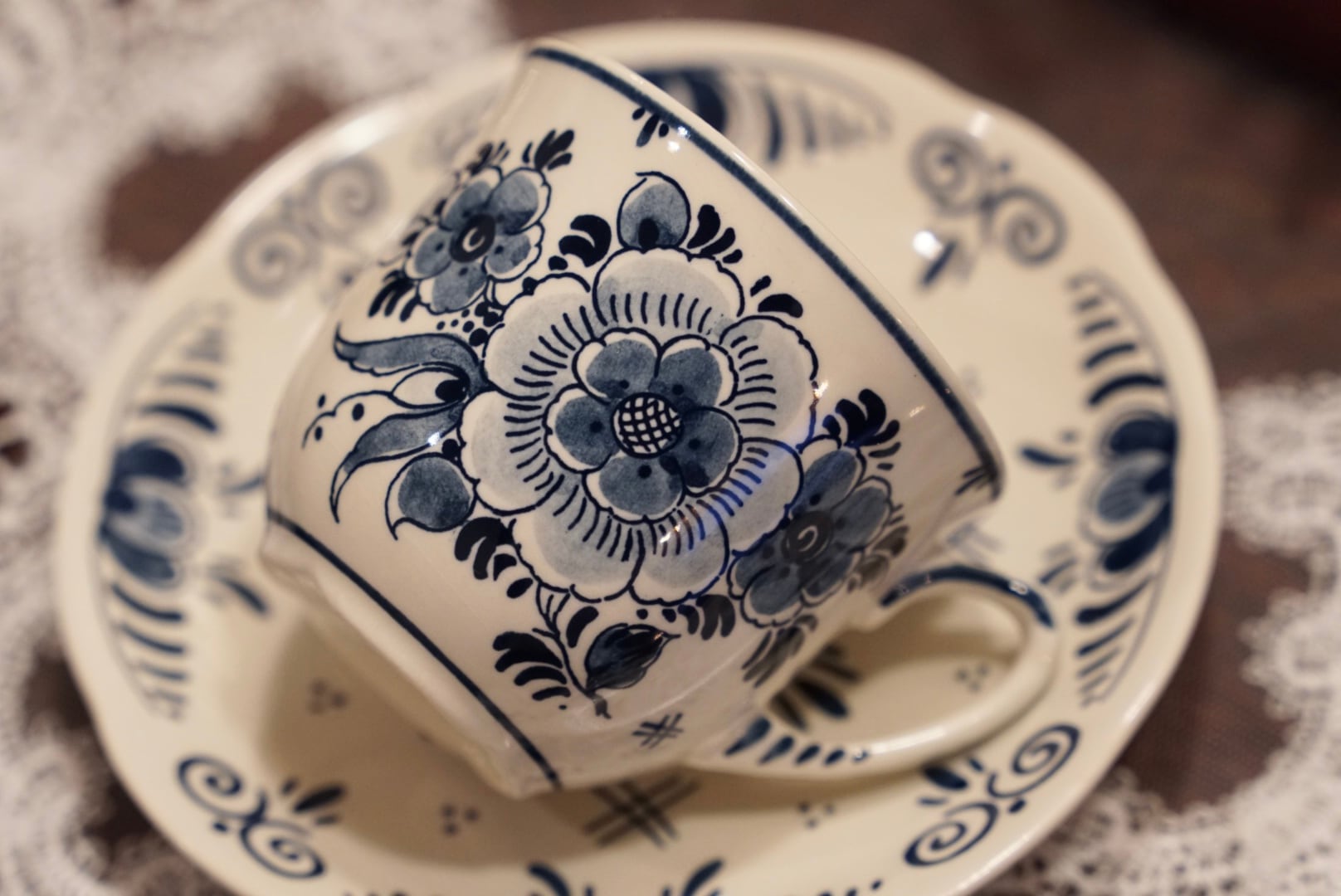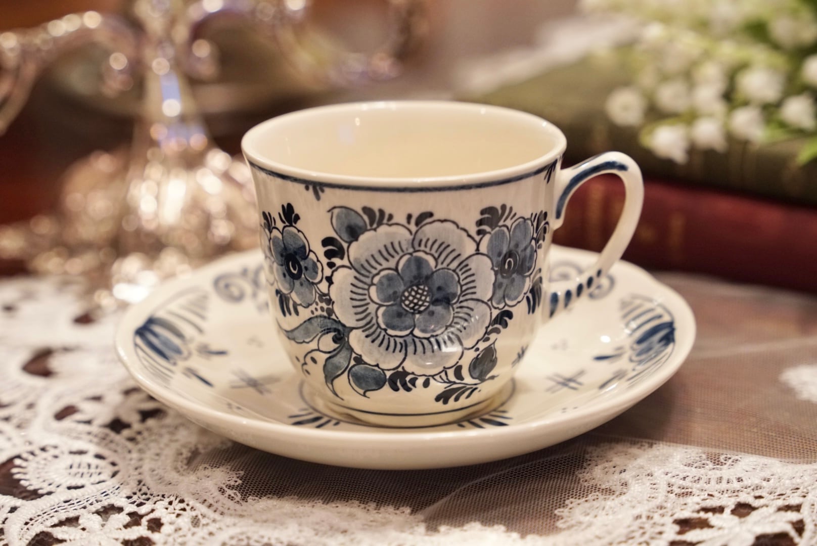 運河の街、オランダが誇る伝統工芸デルフトウェア。その名窯 Royal Goedewaagen(ロイヤル・フーデワーヘン)が手がけた、手描きの青花ティーカップ&ソーサーです。