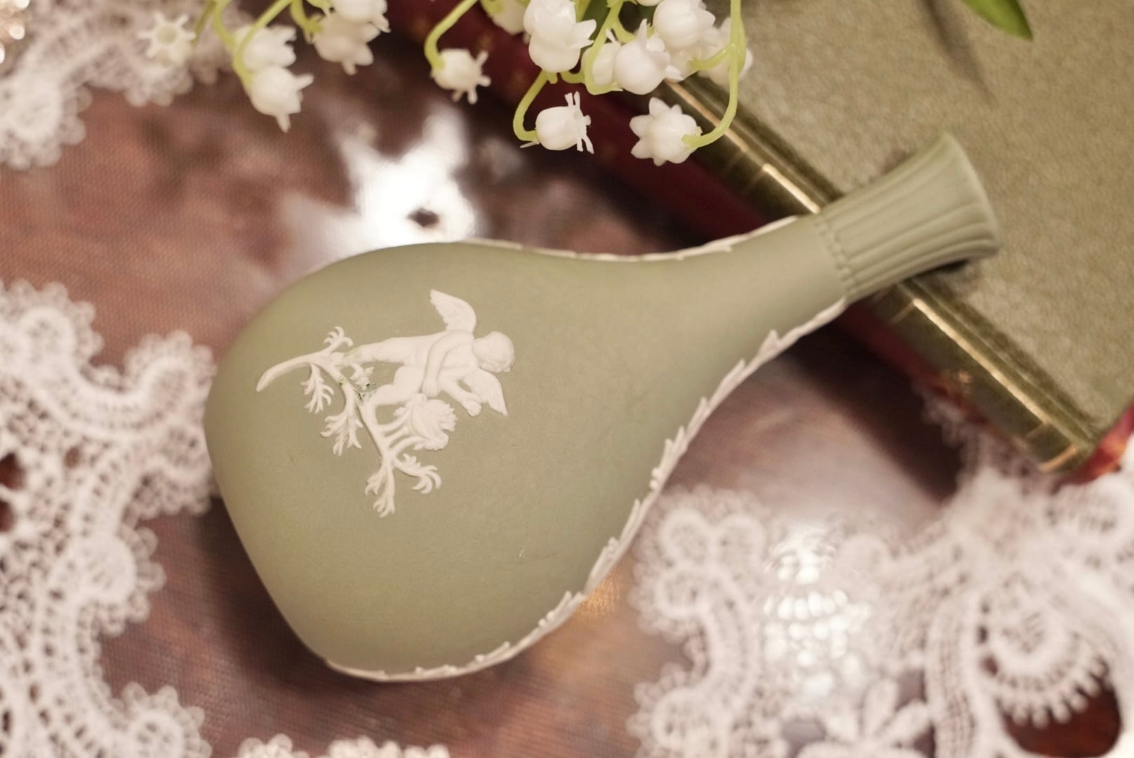 【Wedgwood】ウェッジウッド ジャスパーウェア セージグリーン キューピッド バドベース フラワーベース 一輪挿し ヴィンテージ